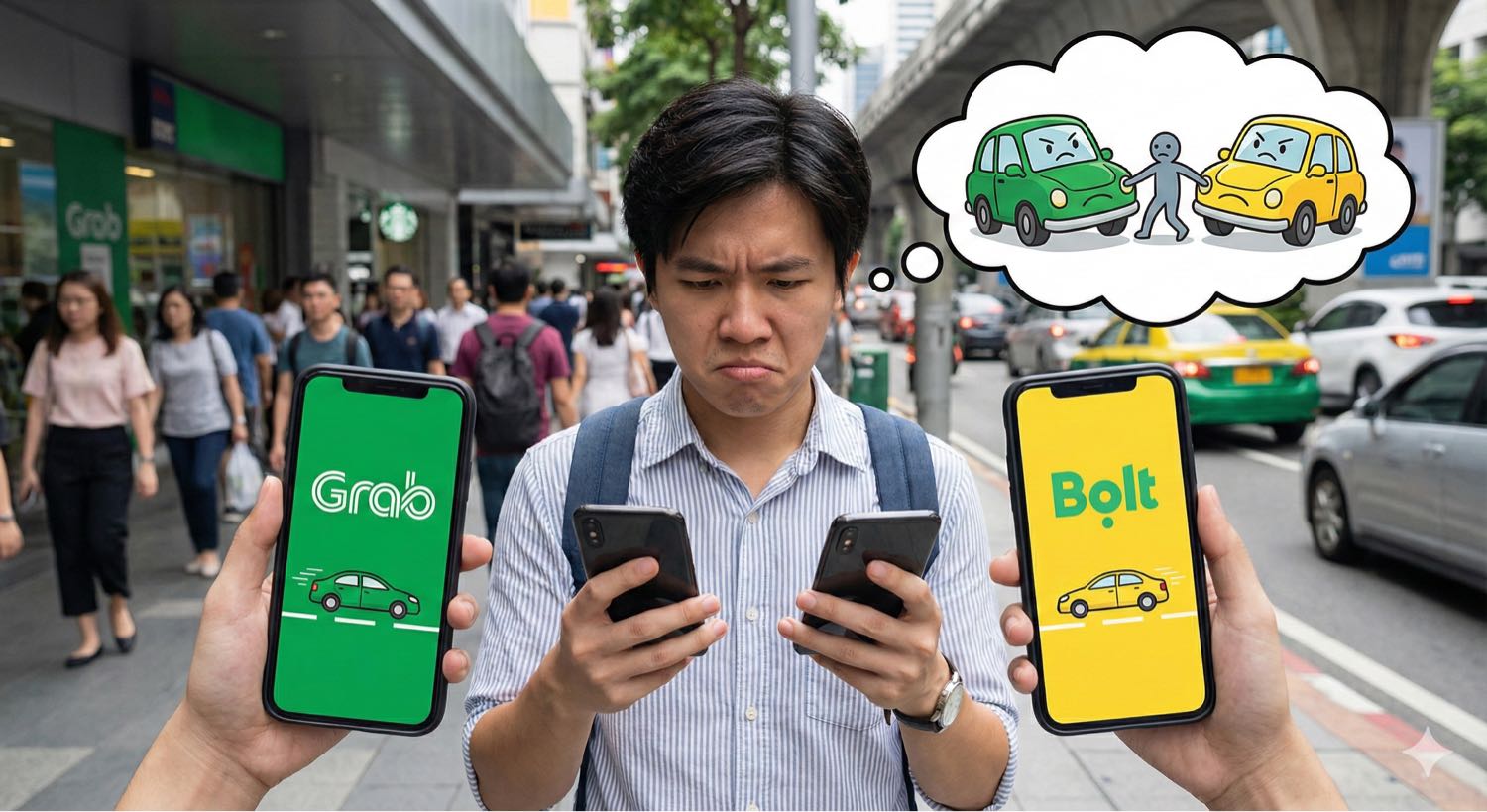เคยไหม… เรียก Grab กับ Bolt พร้อมกัน “คันไหนจะถึงก่อน?
