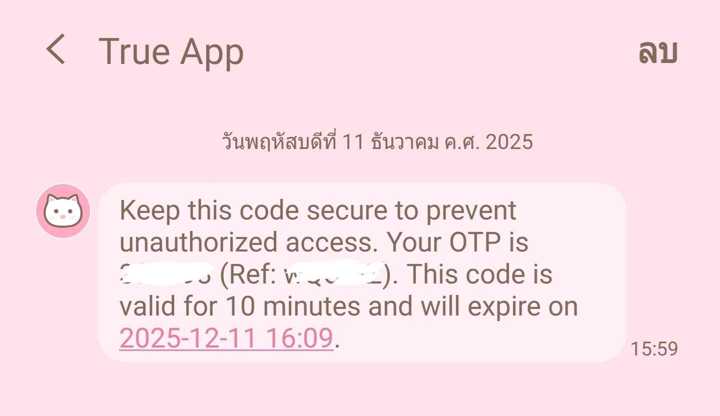 อันนี้ใช่ข้อความจากทรูจริงๆไหมคะ พอดีจะซื้อซิมรายปีใช้แบบเบอร์เดิมแต่ทางร้านให้บอกหมายเลขotp ที่ส่งเข้าโทรศัพท์ โทรไปหาทรูเค้าก็บอกไม่รู้ กลัวเป็นมิจดูดเงินค่ะ