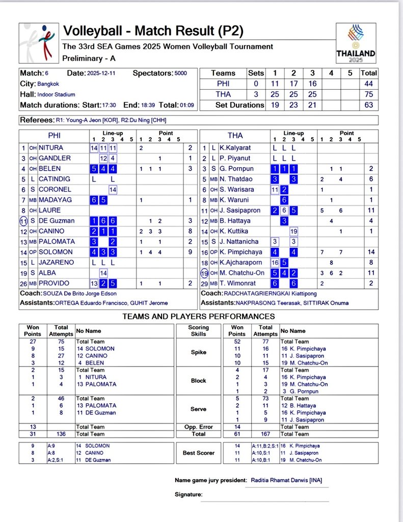 บิ๋ม 26 แต้ม (ตบ 22, เอส 2, บล็อก 2) บีม 15 แต้ม (ตบ 13, บล็อก 2) เพียว 14 แต้ม (ตบ 13, บล็อก 1) แนน 9 แต้ม (ตบ 5, บล็อก 4) เตย 7 แต้ม (ตบ 5, เอส 1, บล็อก 1) พู่ 3 แต้ม (ตบ 1, เอส 1, บล็อก 1)
