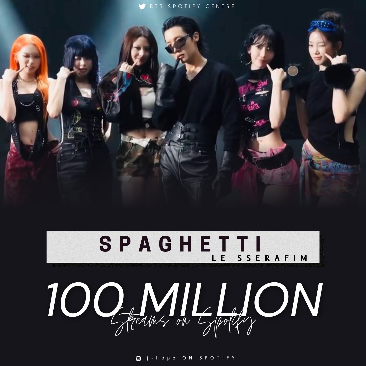 LE SSERAFIM "SPAGHETTI (feat. j-hope)" มียอดสตรีมทะลุ 100 ล้าน บน Spotify 🎉 เป็นเพลงที่ 15 ของเจโฮปที่บรรลุยอดนี้