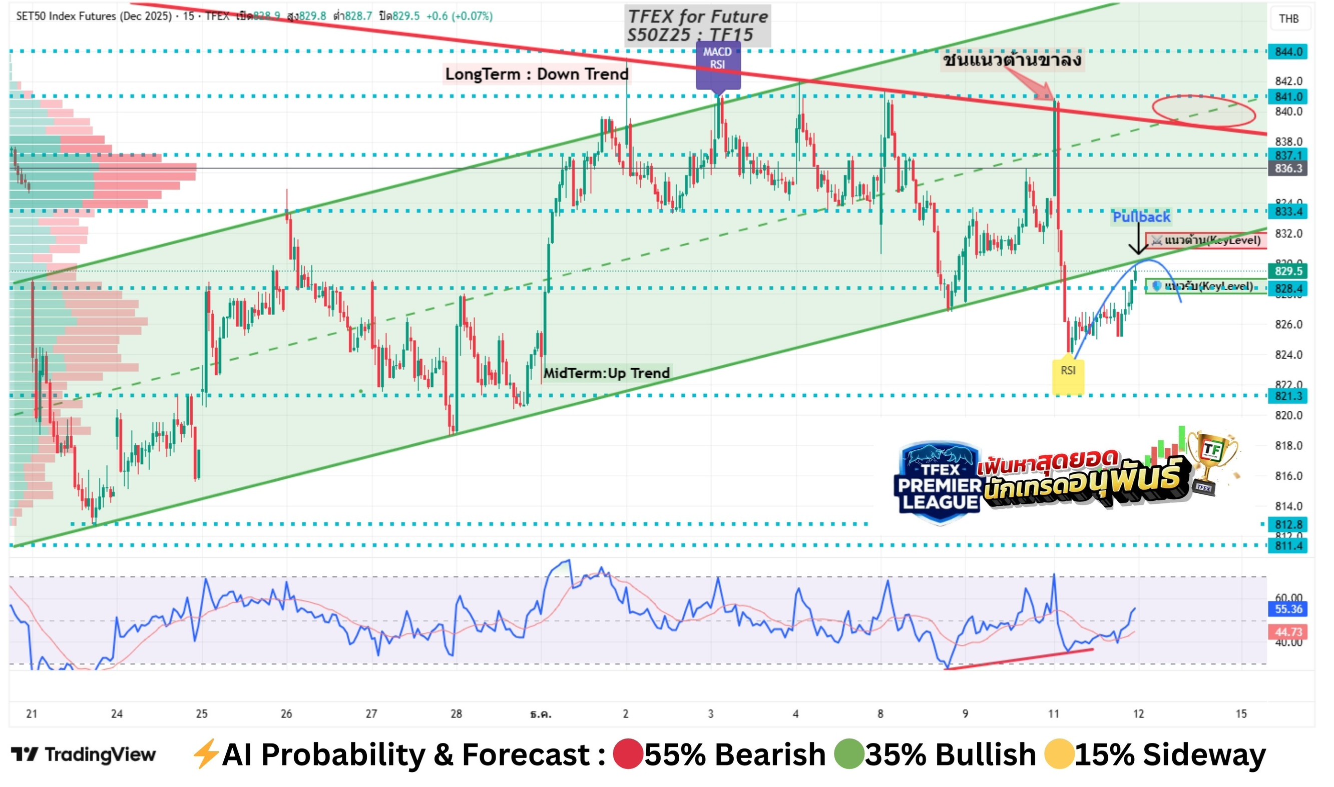🟡 Sideway Plan : เก็งกำไรกับความผันผวน เน้นกรอบกว้าง 820 - 832 ตามสไตล์หุ้นไทย