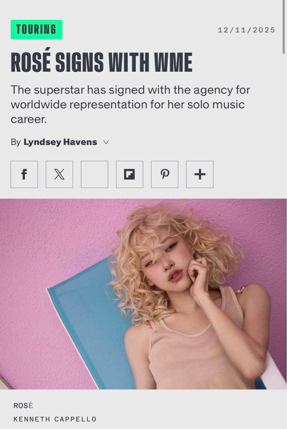 โรเซ่ได้เซ็นสัญญากับ WME เพื่อเป็นตัวแทนระดับโลก สำหรับผลงานในอนาคตและการทัวร์เดี่ยวทั่วโลกของตัวเองด้วย