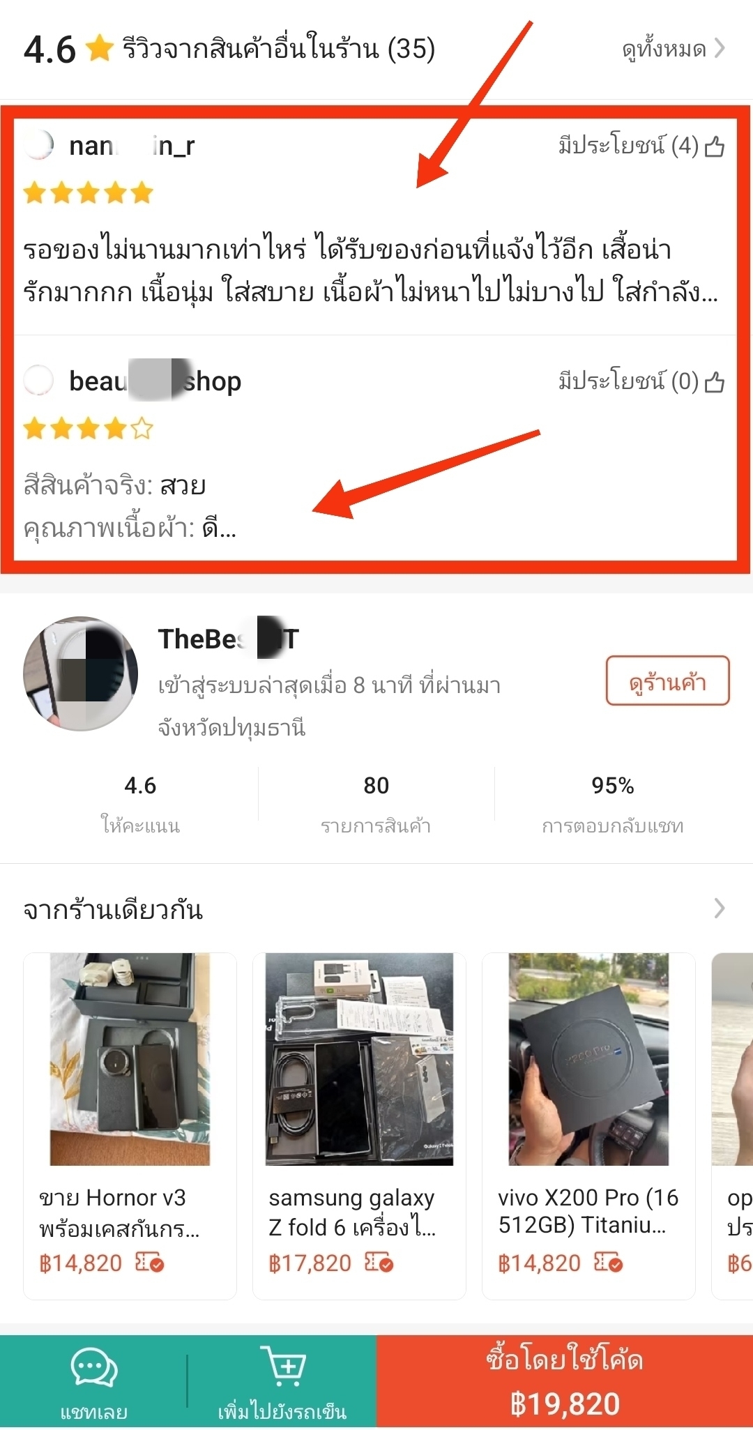 2  รีวิว มีรีวิวเยอะ แต่สังเกตุ ดูดีๆ มีแต่รีวิวเสื้อผ้า  ของร้านเดิม