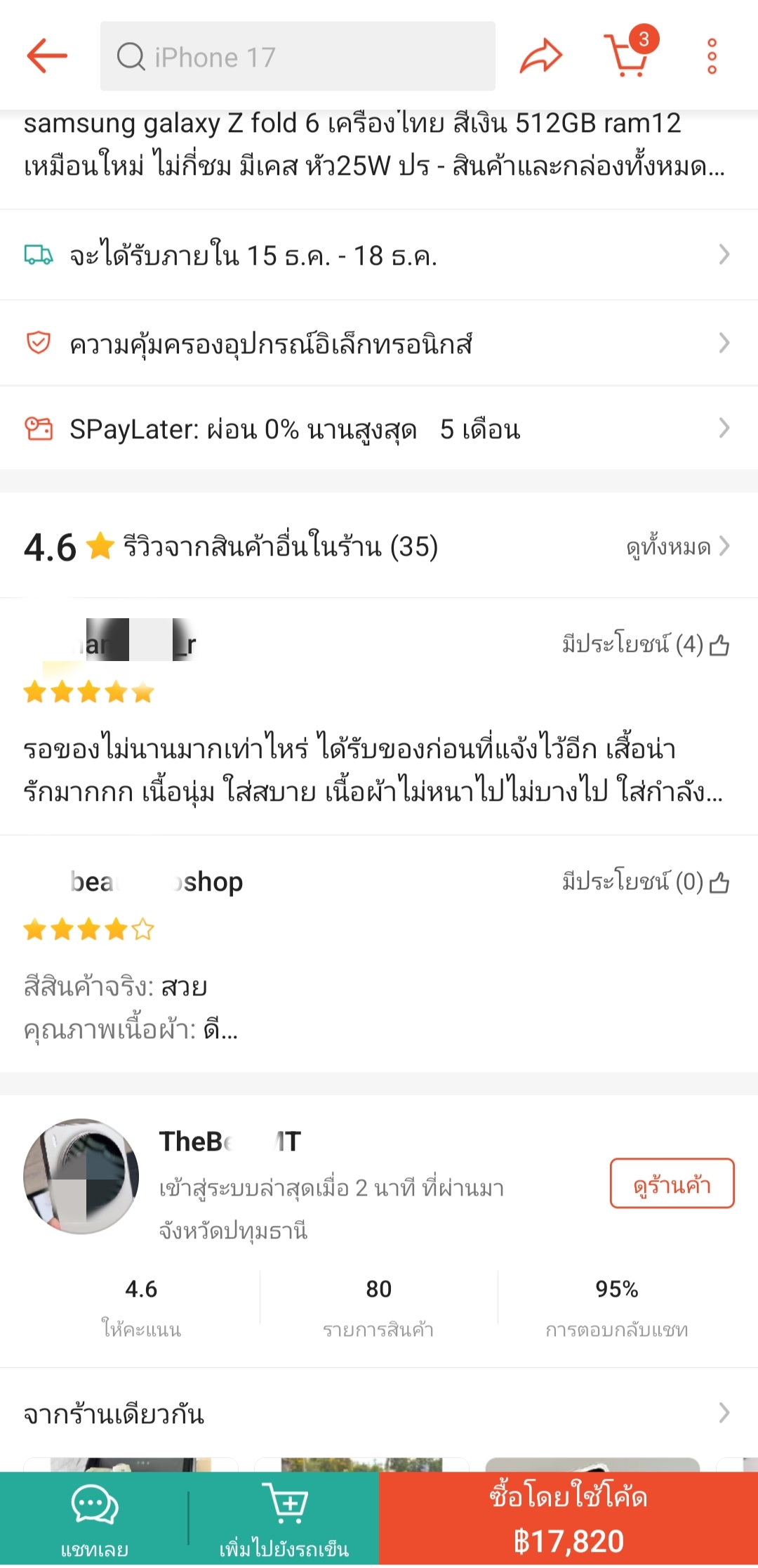 แต่มันใช้******คะแนนและรีวิว ของร้านเสื้อผ้า*******  มาหลอกเหยื่อที่เผลอไม่ทันสังเกตุให้เชื่อถือว่ามีตัวตนและคะแนนร้านดี