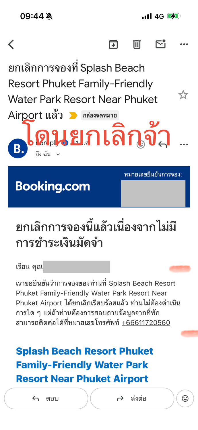 เรื่องมีอยู่ เราจองโรงแรม Splash Beach Resort ภูเก็ต ผ่าน Booking.com ตั้งใจจะไปพักผ่อนกับครอบครัว สุดท้ายโดนโรงแรม บอกว่า ราคาที่ลงไปผิด บังคับให้เรายกเลิกการจอง และผิดถึง2ครั้ง
