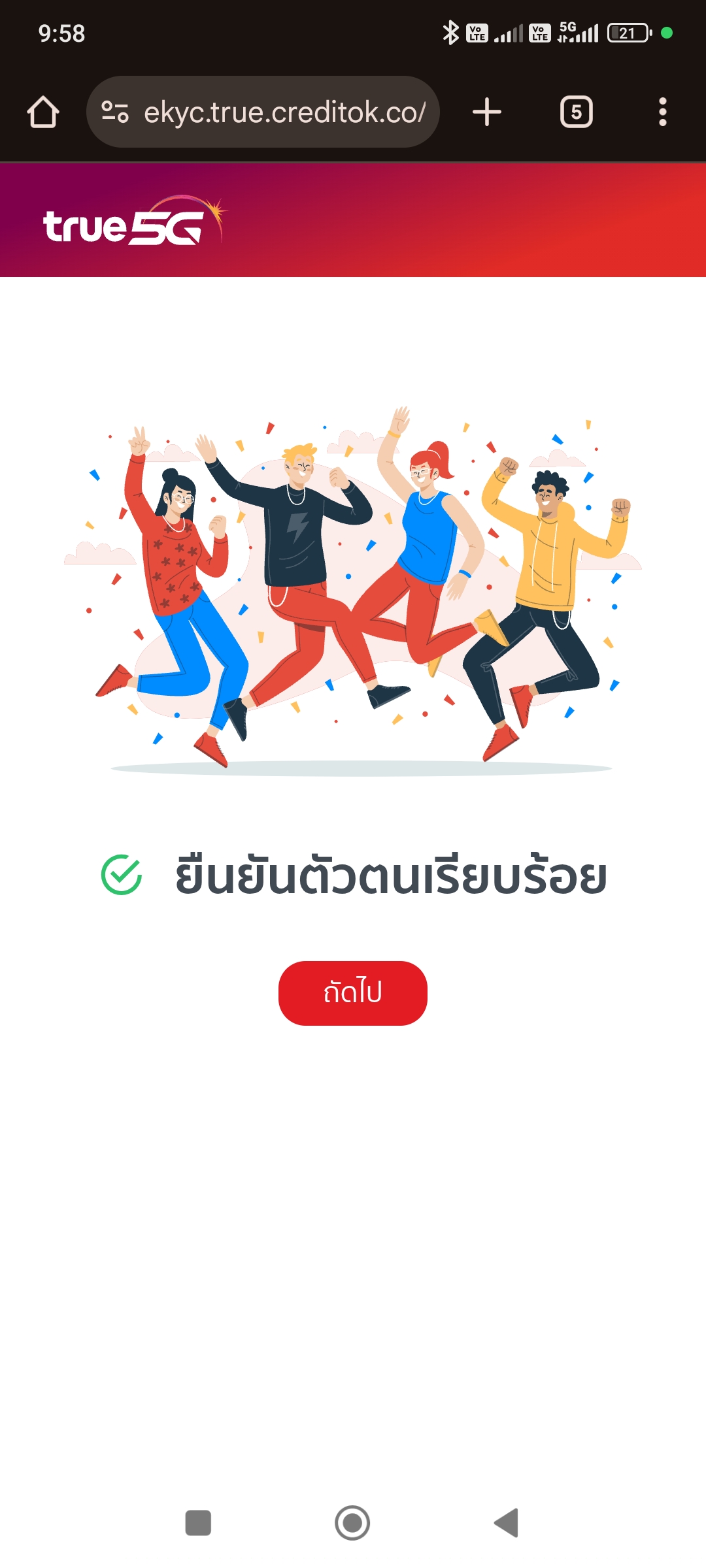 พอดีงง หลังจากกดยืนยันตัวตนสำเร็จ มันก็เด้งกลับหน้าเว็ปทรูเลย