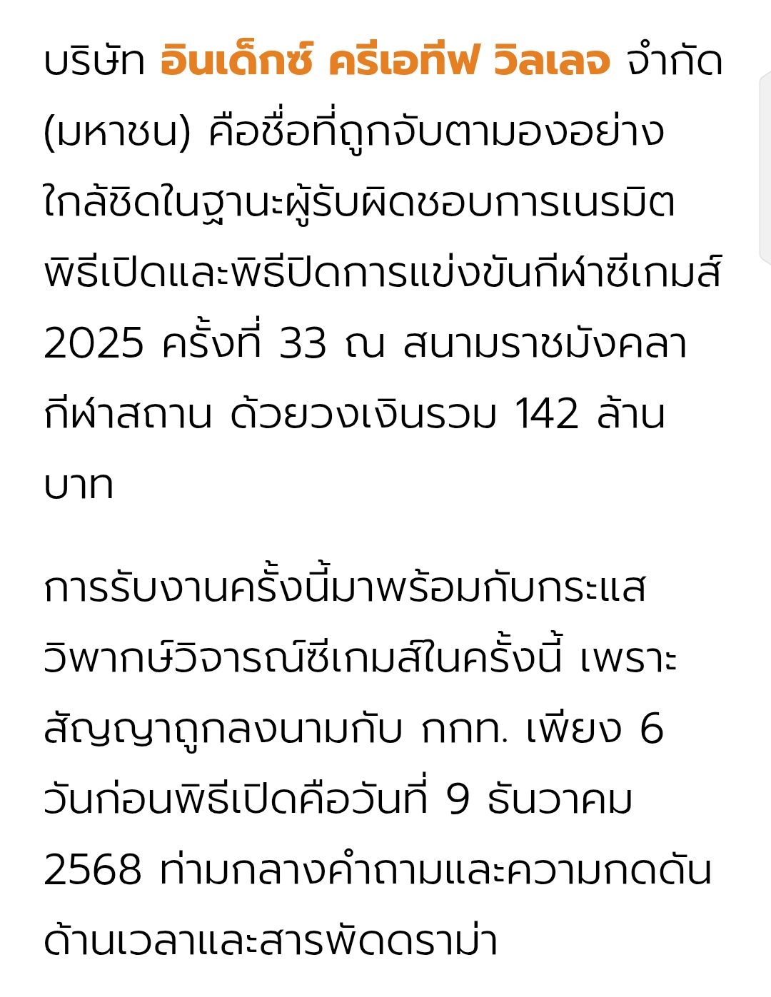 ซึ่งตัวเลขนี้เกิดขึ้นก่อนที่บริษัทจะเซ็นสัญญาจัดพิธีซีเกมส์ 2025