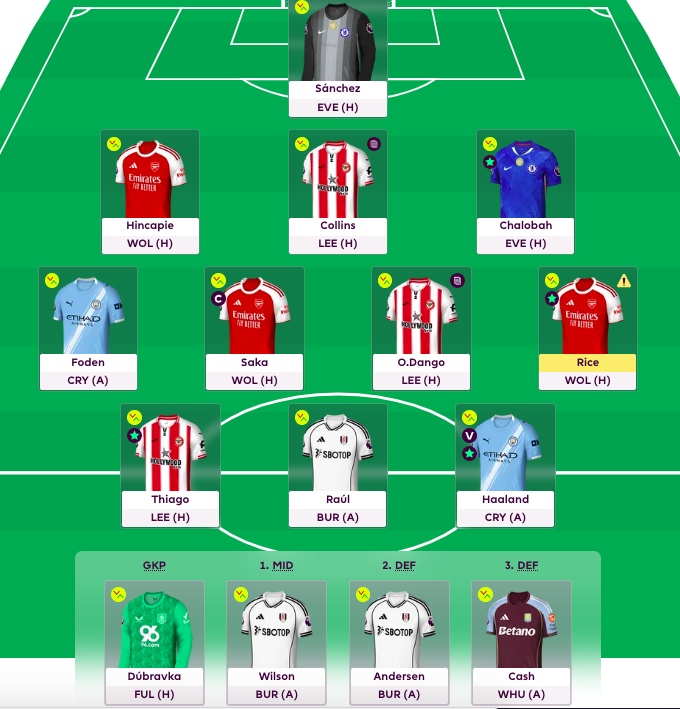 ดราฟท์ FH ณ ตอนที่พิมพ์บทความ ยึดไปที่ อาร์เซน่อล, เบรนท์ฟอร์ด, เชลซี, ฟูแล่ม โดยมีตัวกันคนไม่ FH อย่างฮาลันด์ และโฟเด้น ซึ่งคาดหวังแต้มได้ด้วย ตัวที่ยังไม่มีในทีม แต่อยู่ในข่ายพิจารณา ก็ยังมีชื่อของ บรูโน่ (จริงๆ ทั้ง 2 บรูโน่เลย), โรเจอร์, ตัวรุกเชลซี (แต่เลือกยากอะ)