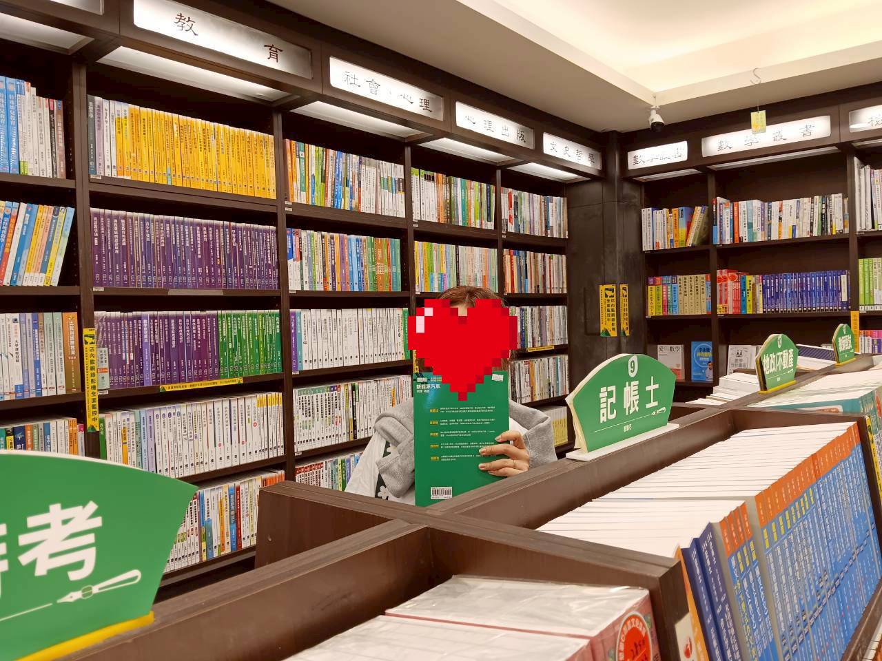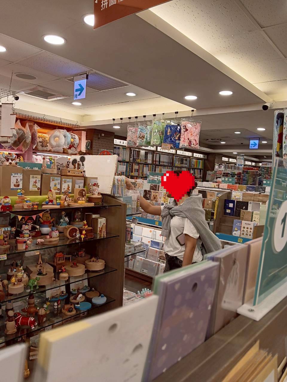 เป็นร้านที่ขายทั้งเครื่องเขียน ตุ๊กตา ของจิปาถะต่าง ๆ คล้ายกับร้าน moshi moshi มีทั้งหมดขนาด 4 ชั้น โดยชั้นที่ 1 - 2 เป็นโซนขายหนังสือทั่วไป ชั้น 3 - 4 เป็นโซนเครื่องเขียนและของจิปาถะต่าง ๆ ระหว่างบันไดทางเดินขึ้น ก็มีของประดับตกแต่งความงามสำหรับสุภาพสตรีเรียงรายเต็มไปหมด ทั้งยางรัดผม กิ๊ปหนีบผม ถุงเท้าลายการ์ตูน เราใช้เวลาตรงนี้ร่วม ๆ หนึ่งชั่วโมง ได้ถุงเท้าลายน้อง Hangyodon และได้โมจิไส้ชาไข่มุกมา 1 กล่อง ที่เราเจอว่าขายที่คาร์ฟูร์ในราคา 99 NTD แต่มาขายที่ร้านเครื่องเขียน ราคาเพียง 49 NTD เพราะฉะนั้นใครจะซื้อขนมเป็นของฝาก ลองหาดูตามร้านขายของเล็ก ๆ ดูก่อน อาจจะได้ราคาที่ย่อมเยากว่า