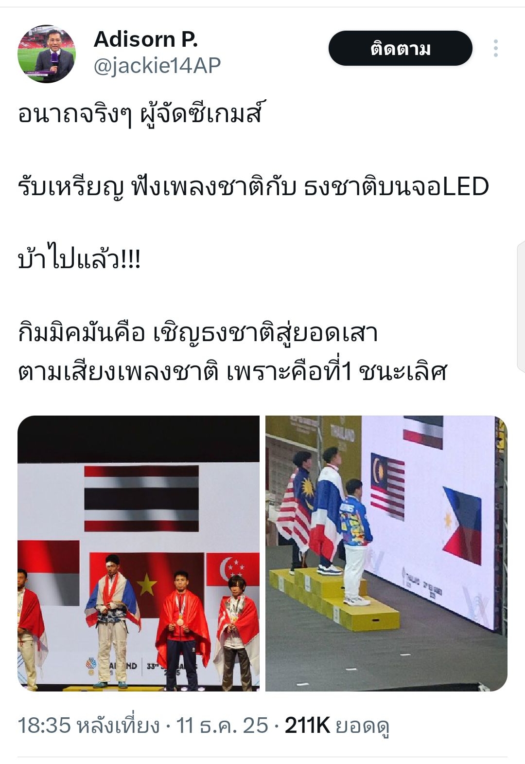 เชียร์ไทย ในซีเกมส์ THAILAND 2025...12/12/68.....ถ่ายทอดเช้า ไทยรัฐ+Tsport/บ่าย PPTV+ช่องวัน