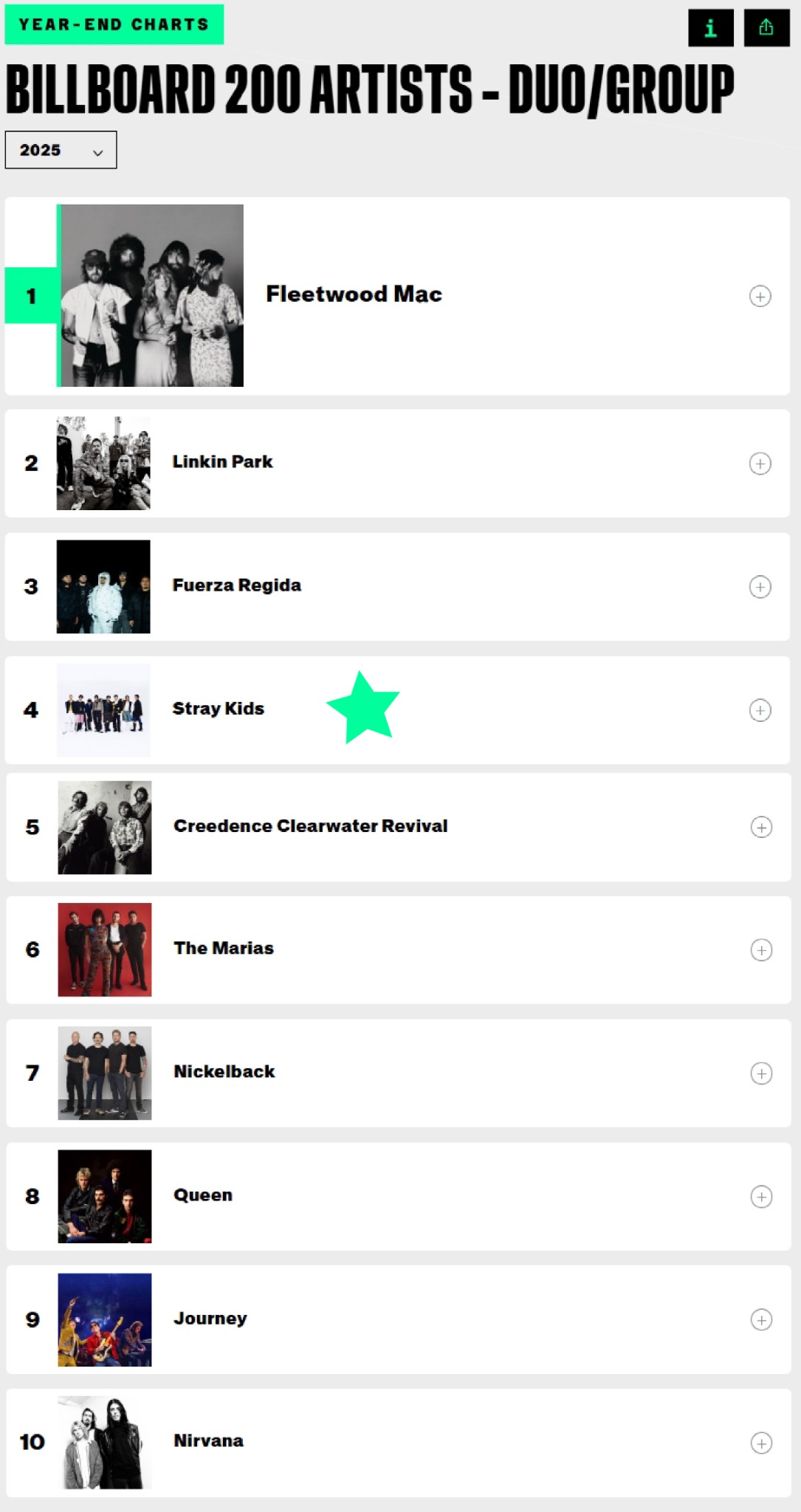 🔥 Stray Kids อันดับ 1 K-Pop บน Year-End Billboard 200 Artists-Duo/Group 2025