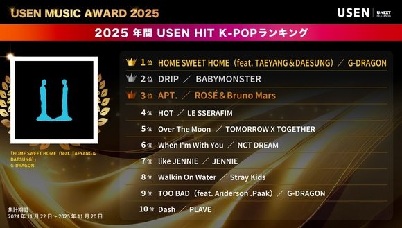เพลง DRIP ของ BABYMONSTER เป็นเพลงที่คนญี่ปุ่นฟังมากที่สุดอันดับ 2 ในปี 2025 ตามการจัดอันดับรางวัล USEN MUSIC AWARD 2025