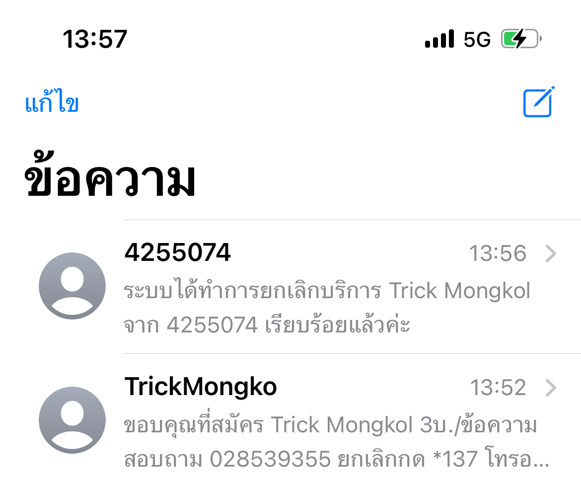 พึ่งย้ายเบอร์นี้มา True อยู่ก็ได้ sms นี้ ทั้ง ๆ ไม่ได้กดสมัครอะไรเลย ตอนอยู่ ais ไม่เคยเจอแบบนี้เลย ย้ายมาก็เจอเลย แบบนี้เกินไปไหม ทรู และทำตอนเที่ยงคืนด้วยนะ แล้วถ้าหลับไป ยกเลิกไม่ทัน ตอนเช้ามาได้