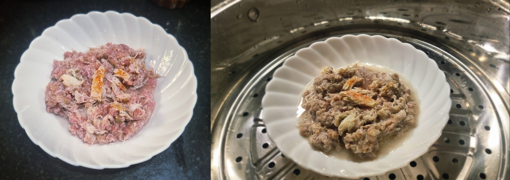 หมูสับปลาอินทรีกับเนื้อปูนึ่ง🐷🦀🐟🌿