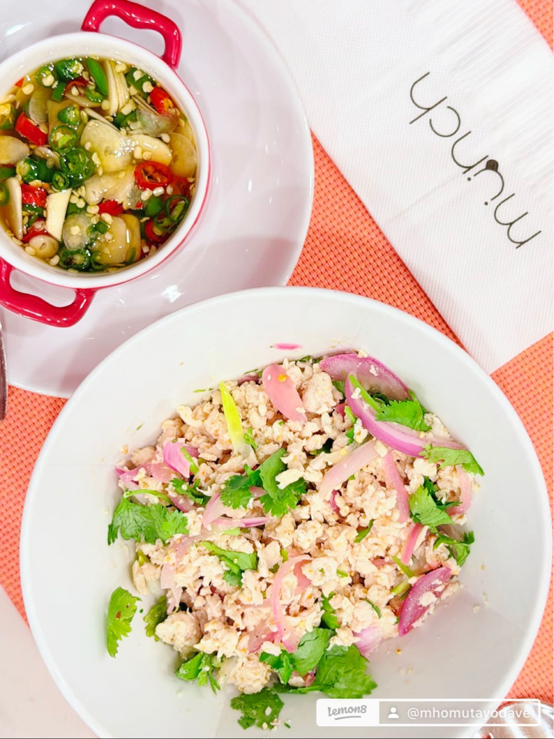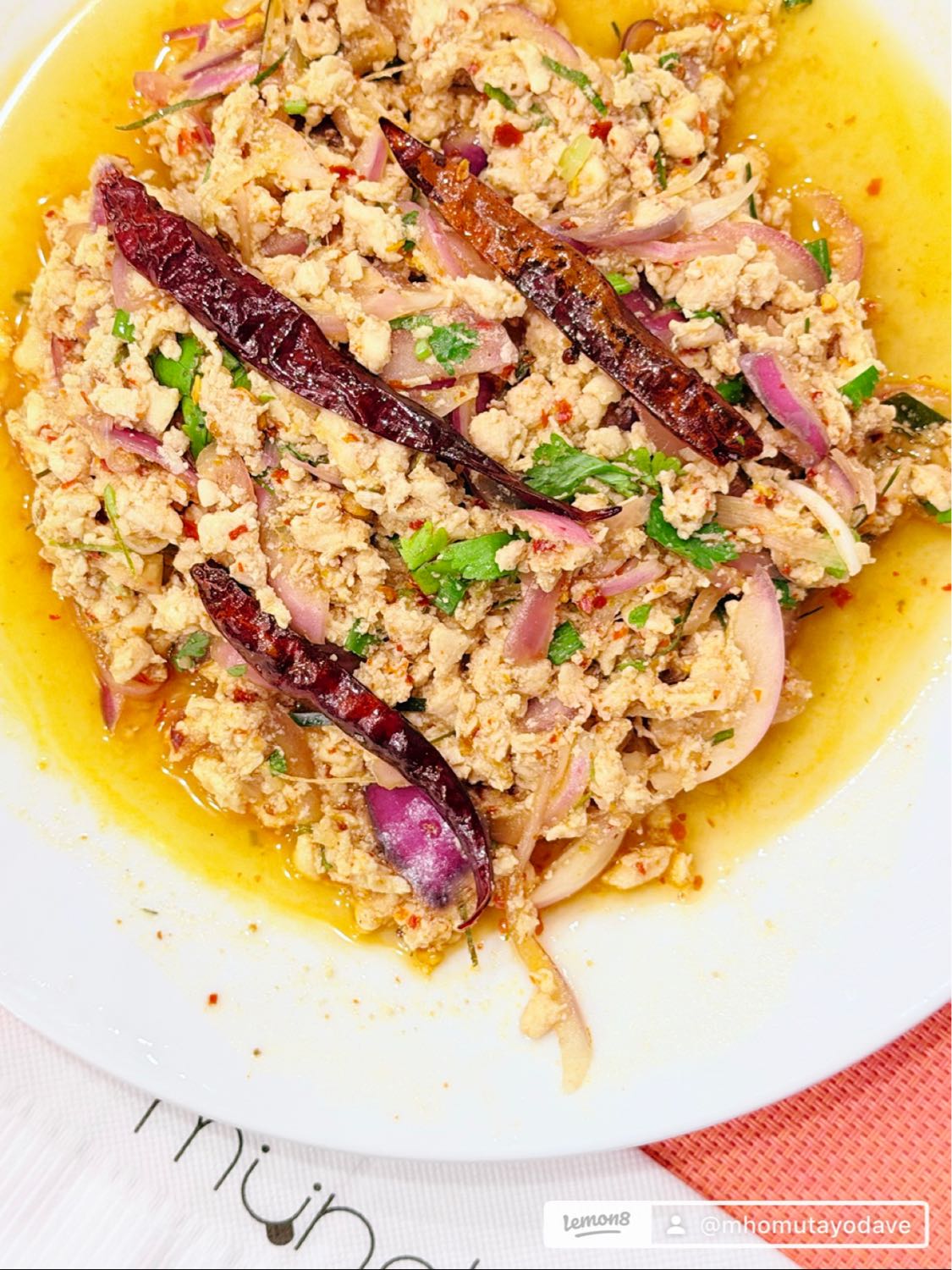 มื้อเที่ยงวันนี้คือความฟินแบบรสชาติระดับภัตตาคารเลยครับ ลาบไก่แซ่บๆ รสจัดจ้าน หอมข้าวคั่วและสมุนไพร สดใหม่ทุกคำ แกงสายบัวกะทิ เข้มข้น หอมมันกะทิ ซดคล่องคอ ข้าวผัดไข่ หอมกลิ่นกะทะแบบเฉพาะตัว กินคู่กับ