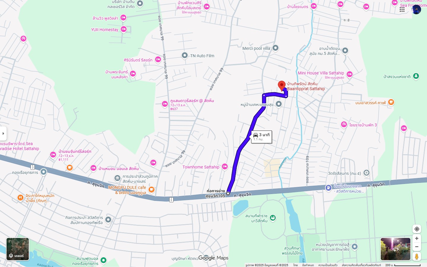 จขกท.มีภารกิจต้องไปที่โรงพยาบาลสมเด็จพระนางเจ้าสิริกิติ์ สัตหีบ แต่เช้า จึงหาที่พักใกล้ ๆ โรงพยาบาลฯ ค่ะ เสริชหาและได้จองบ้านทิพรัตน์ สัตหีบ / Baantipprat Sattahip 1 คืน เป็นที่พักที่ไม่ติดทะเล ไม่ติดถนนใหญ่และต้องเข้าซอยประมาณ 1.1 กม.