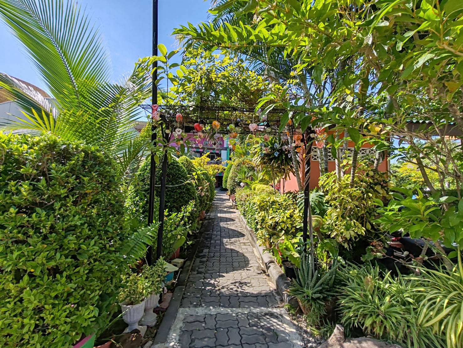 ที่พักที่ร่มรื่น เงียบ สงบ มีที่จอดรถ และสระว่ายน้ำเล็ก ๆ ทางเดินไปห้องพัก