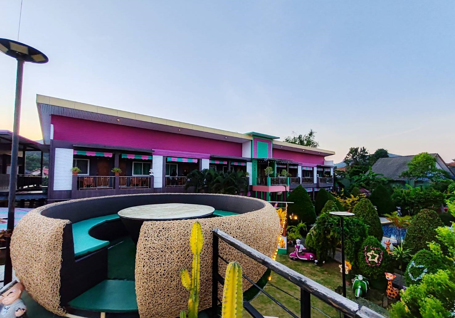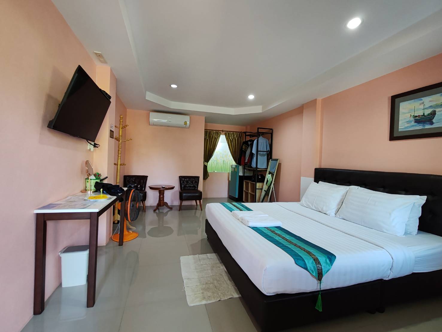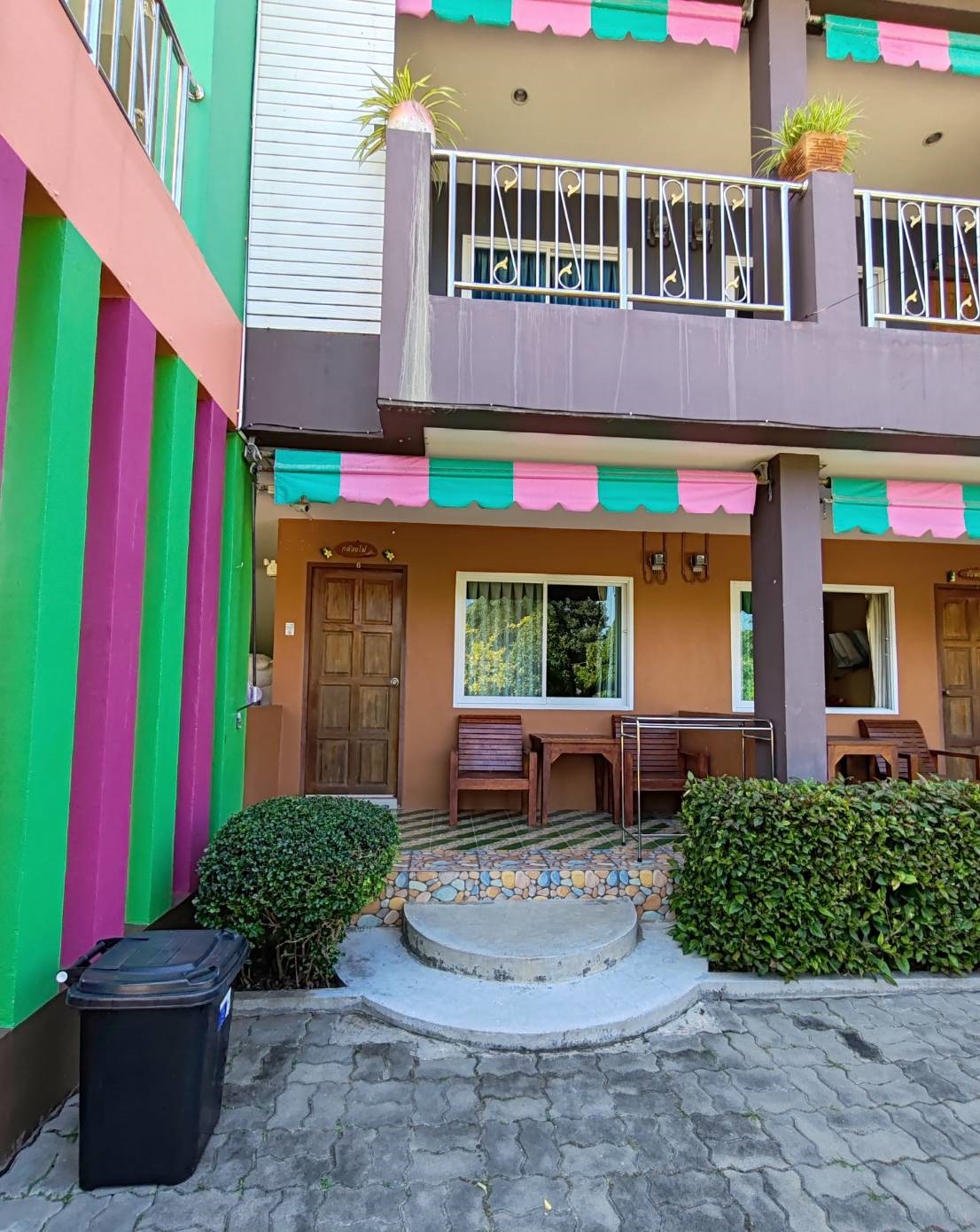 ที่พักมี 2 อาคาร ประมาณ 30 ห้อง จขกท.ได้พักชั้น 1 มีเก้าอี้และราวตากผ้าเล็ก ๆ วางหน้าห้องพัก