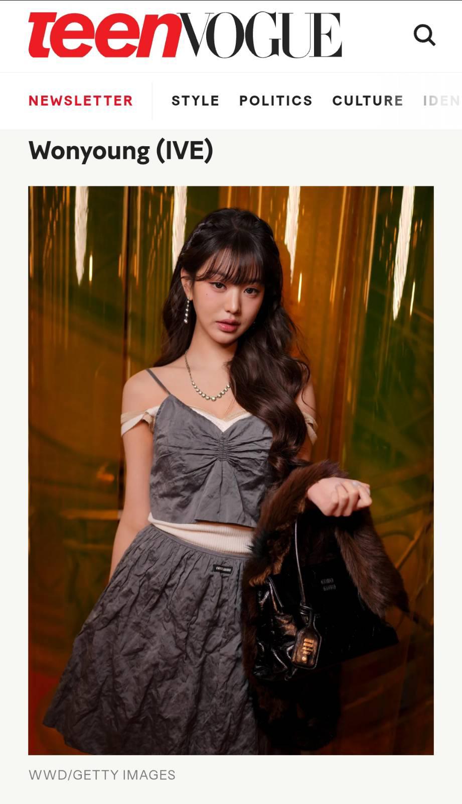 สำหรับวอนยองแล้ว “Coquette” ไม่ใช่แค่กระแส แต่เป็นไลฟ์สไตล์ เธอมักจะปรากฏตัวในลุคที่เต็มไปด้วยระบาย ปลายแขนเสื้อแบบแคป ถุงเท้ายาวถึงเข่า และรองเท้าบัลเลต์ จากแบรนด์อย่าง Miu Miu, Nana Jacqueline และ Shushu/Tong วอนยองมีเสน่ห์แบบโรแมนติกที่ดู effortless ในสไตล์ลำลองของเธอ ส่วนชุดบนเวทีนั้นมีความหลากหลายแบบ IVE แต่สไตล์หวาน ๆ อันเป็นเอกลักษณ์ของวอนยองก็ยังโดดเด่นออกมาเสมอ