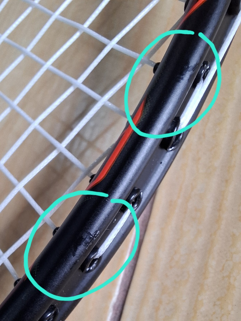 วันนี้เอาไม้แบดไปขึ้นเอ็นที่ supersports central world อยากรบกวนถามว่าปกติเวลาเอาไม้ไปขึ้นเอ็นจะมีรอยกลับมาแบบในรูปไหมครับ