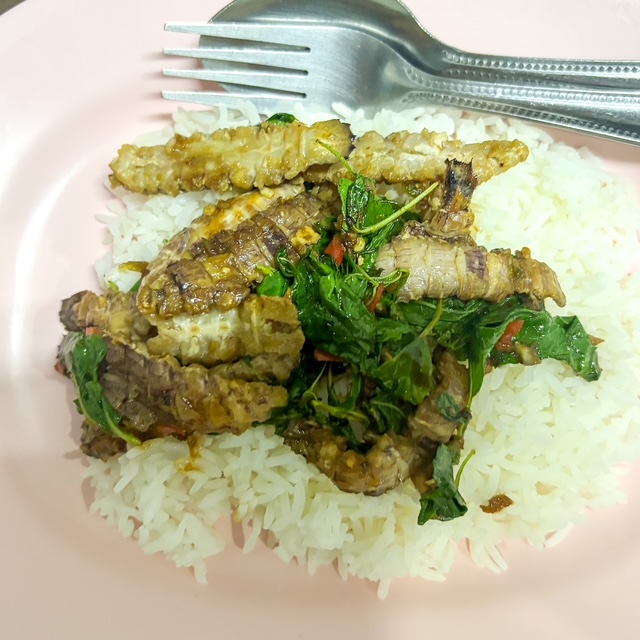 กินเที่ยวชลบุรี: ข้าวต้มกุ้ยครูเดช หนองมน ขายตอนเย็นๆค่ำๆ รสชาติดี สั่งตามชอบ ปลาพิโรธ ไส้ต้นทอดกระเทียม กุ้งทอดกระเทียม(120฿) ผัดแขนงหมูกรอบ ยำทะเล จานละ 80-120฿ ที่สั่งมา รสชาติเข้มข้น