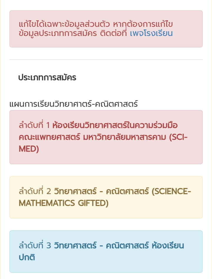 หนูสมัครลพดับแรกเป็นห้องปกติ แต่พอสมัครเสร็จกลับขึ้นในระบบเป็นในความร่วมมือกับคณะแพทยศาสตร์ หนูทักไปที่เพจโรงเรียนเพื่อบอกจุดประสงค์แล้วเมื่อคืน1รอบตอนเช้า11โมง1รอบแต่ทางโรงเรียนยังไม่อ่านเลยค่ะ มีแต่ข้อความอัตโนมัติแก้ยังไงคะ หรือหนูต้องรอเพจโรงเรียนตอบก่อน🙏🏻🙏🏻🥹