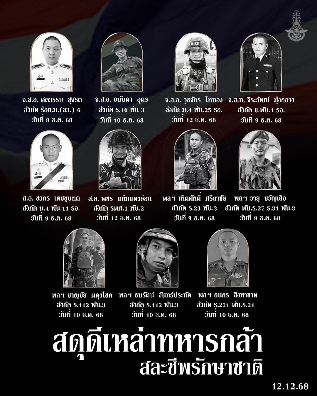 กองทัพไทย ขอสดุดีเหล่าทหารกล้า ผู้สละชีพเพื่อปกป้องแผ่นดินไทยและความปลอดภัยของประชาชน