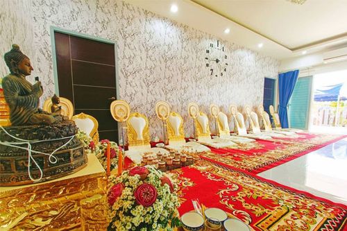 * **การจัดโต๊ะหมู่บูชาและอาสนะสงฆ์** พร้อมพรม ผ้าคลุม และอุปกรณ์ครบครัน
