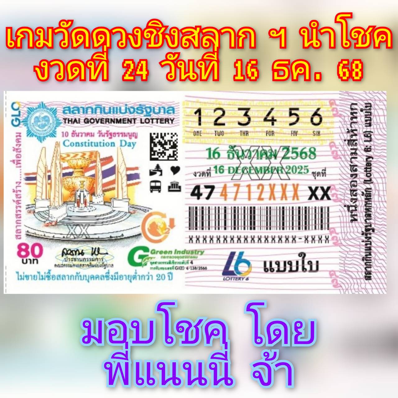 รางวัล :- สลาก ฯ นำโชค งวดที่ 24 วันที่ 15 ธันวาคม 2568 จำนวน 3 รางวัล ๆ ละ 3 ใบ จ้า