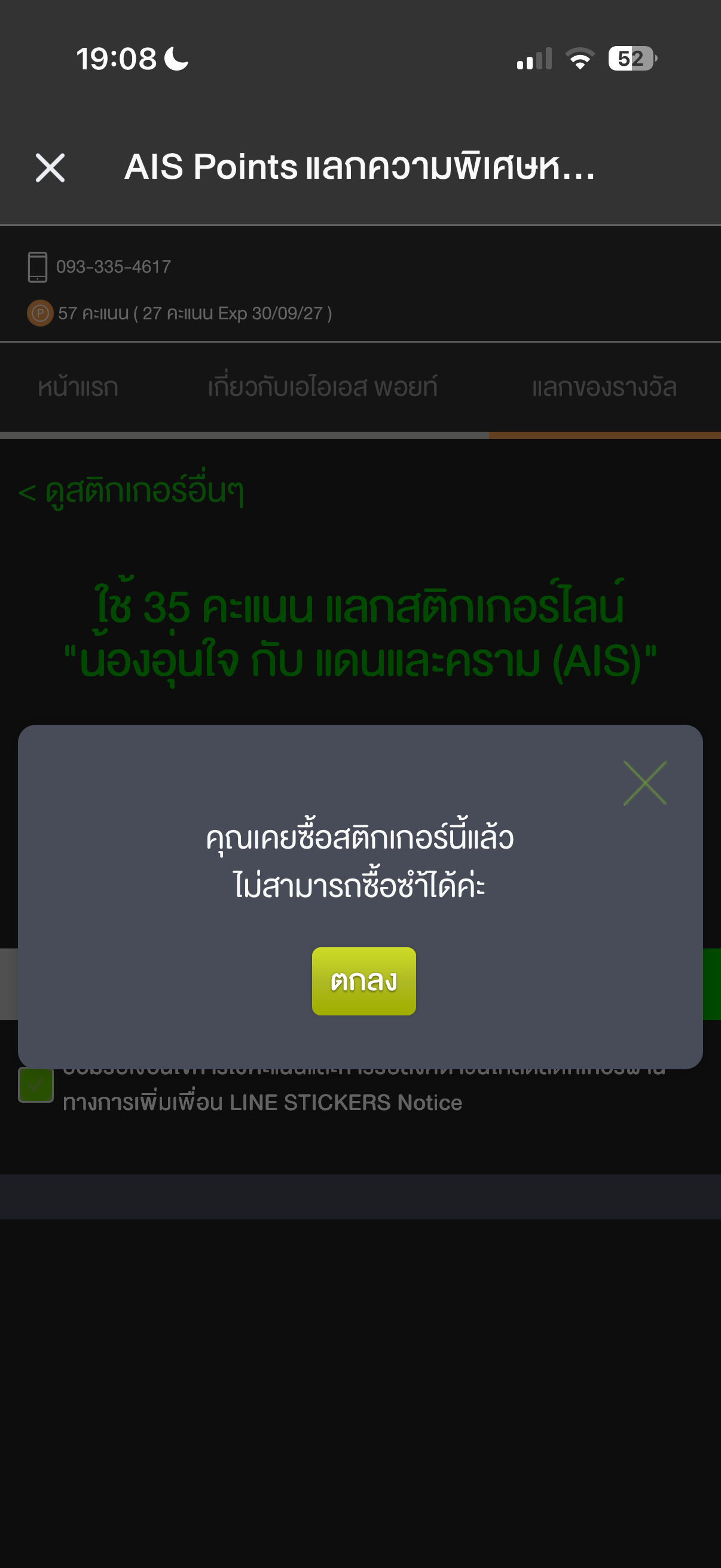 ใช้ais pointแลกสติกเกอร์ไลน์ซ้ำได้ไหม