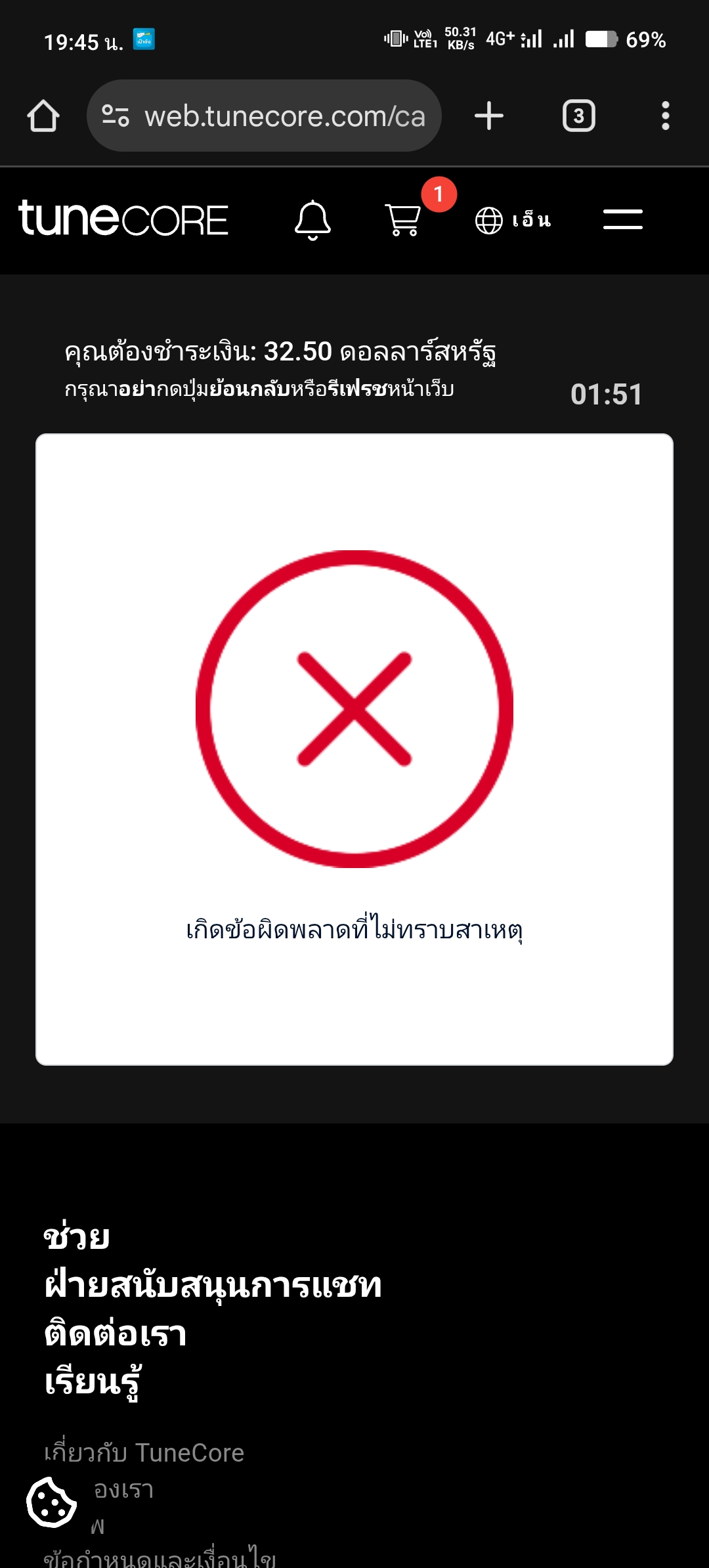 ทำไหมมันtunecodeชำระเงินไม่ได้งงมาก ทำ4รอบแล้ว