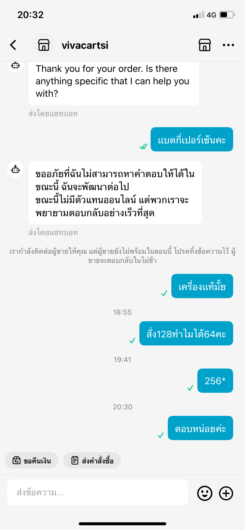 คือสั่งทรศมาสั่งสีขาว256เเต่ได้มาคือสีขาว64หลังเครื่รอยขีดช่วยข่วนหน้าจอทันไม่ติดแล้วก็อัพเดทซอฟเเวะดูพอกดเครื่องก็ค้างตอนนี้ขอคืนเงินไปแต่ต้องรอทางร้านตอบกลับแต่มันจะตอบกลับได้ไงเเม่งปิดร้านหนีรบกวนช่วยคืนเงินด้วอยากติดต่อเจ้าหน้านที่ที่