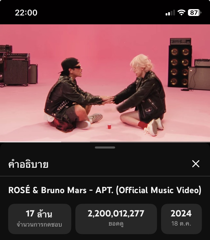 ROSÉ & BRUNO MARS 'APT.' M/V HITS 2.2 BILLION VIEW