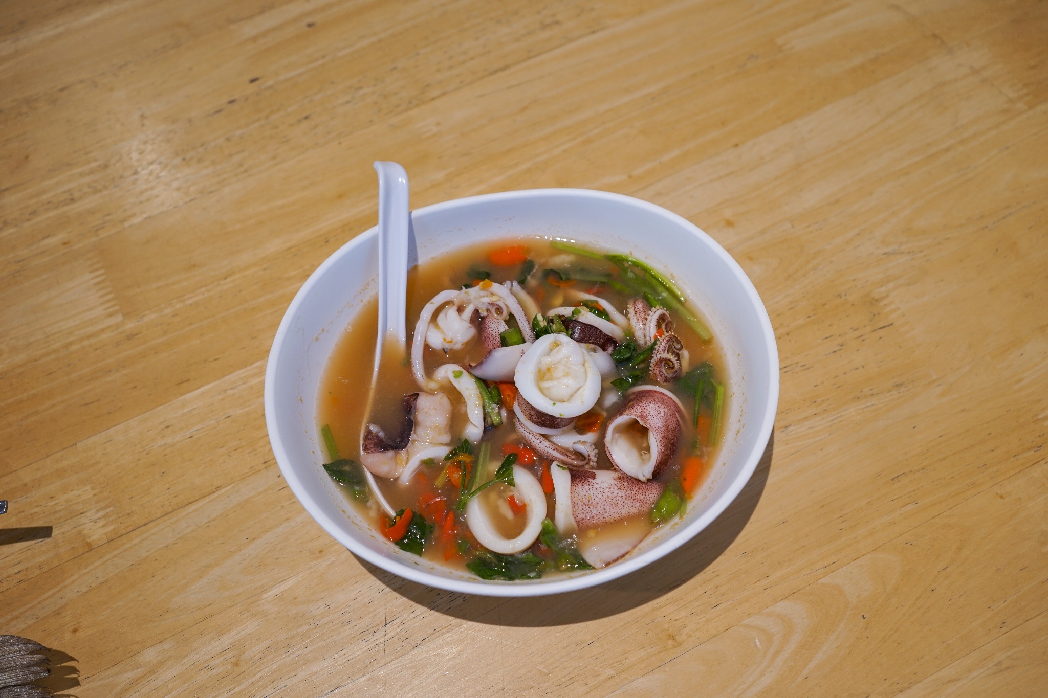 - ยำโคตรทะเลอ่างศิลา เมนูเด็ดของทางร้านเลย มีทั้งปูม้า หอยแครง หมูยอ แต่ถ้าใครไม่ทานปลาร้า สามารถแจ้งพี่พนักงานได้นะคะ