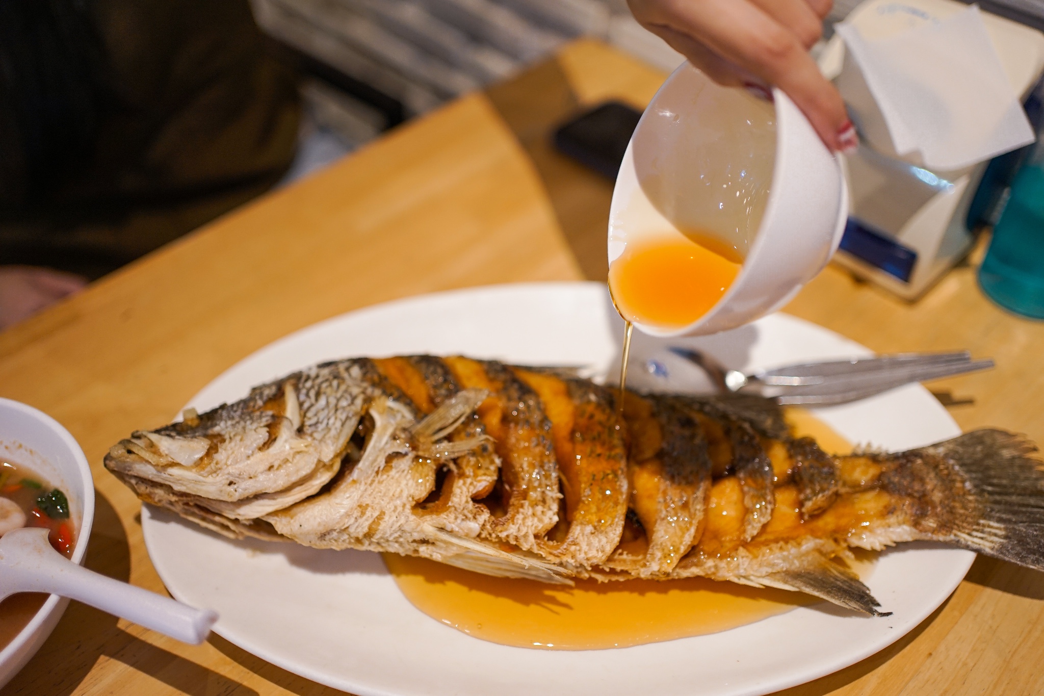 -ปลากะพงทอดราดซอสน้ำปลา เมนูนี้พู่ชอบราดน้ำจิ้มซีฟู๊ดเพิ่มความแซ่บ