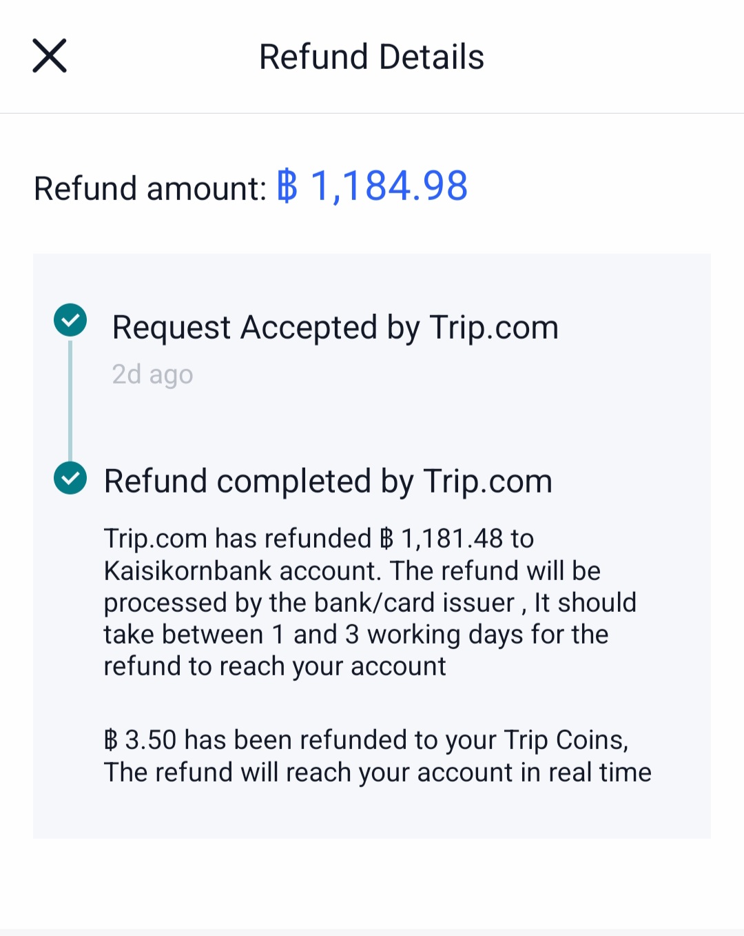 มีใครเคย Refund trip.com ผ่านกสิกรไทย ต้องรอดำเนินการกี่วันคะ?