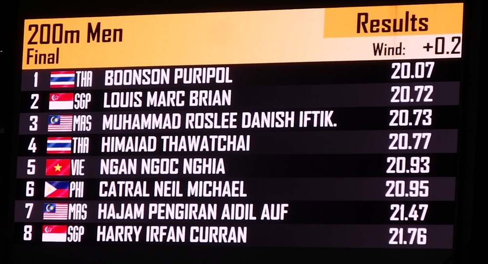 หลังแข่งวิ่ง 5000 เมตรชาย หน้าจอในสนามแสดงผลการแข่งขันช้ามาก เหมือนยังประมวลผลไม่เสร็จ ต้องค่อยๆ ประมวลทีละคน แต่หลังแข่งวิ่ง 200 เมตรชาย หน้าจอขึ้นผลเร็วมาก โดยขึ้นผลของบิวก่อนเลยว่า 20.07 วินาที