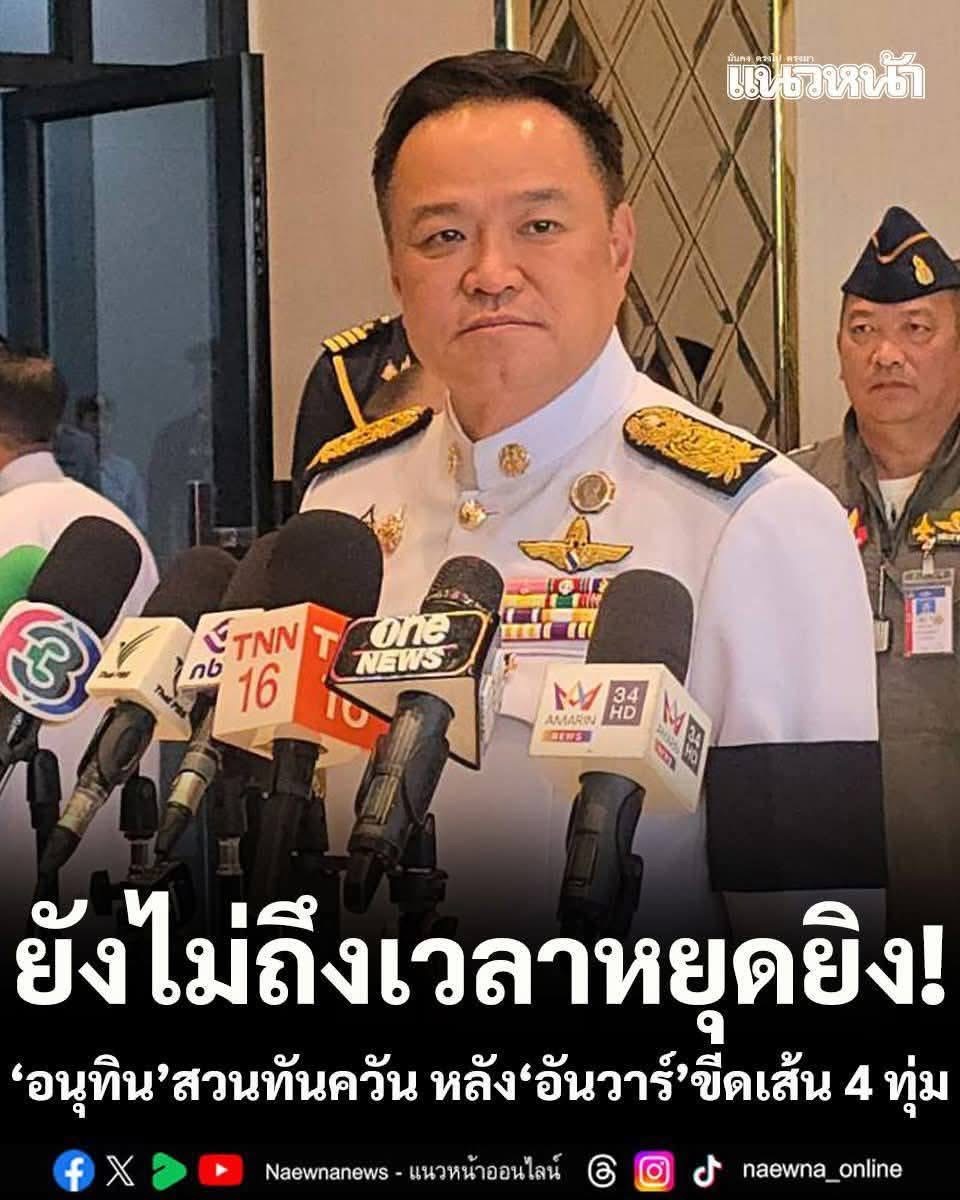อย่างชอบ อนุทิน เมิน อันวาร์ ยัน 4 ทุ่มไม่มีหยุดยิง จี้กัมพูชาต้องแสดงความจริงใจ