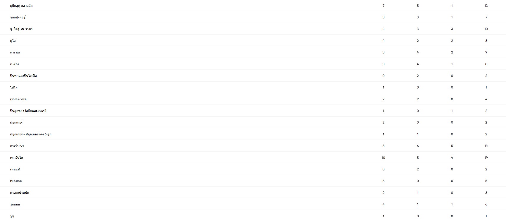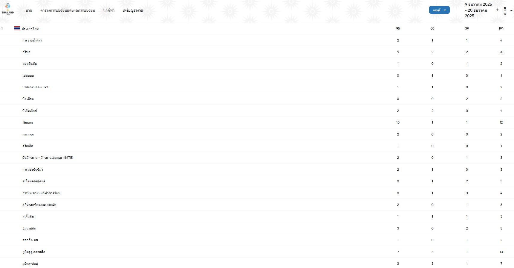 สรุปเหรียญทีมชาติไทย 🎉 ประจำวันที่ 13 ธันวาคม 2025 🏆 กีฬาหลัก 🏆 🥇 เหรียญทอง 29 เหรียญ 🥇 ✅ วูซู Duilian Weapon ชาย ✅ ยูยิตสู ทีมผสม ✅ เทควันโด 53 KG หญิง ✅ เทควันโด 62 KG หญิง ✅ เทควันโด 63 KG ชาย ✅
