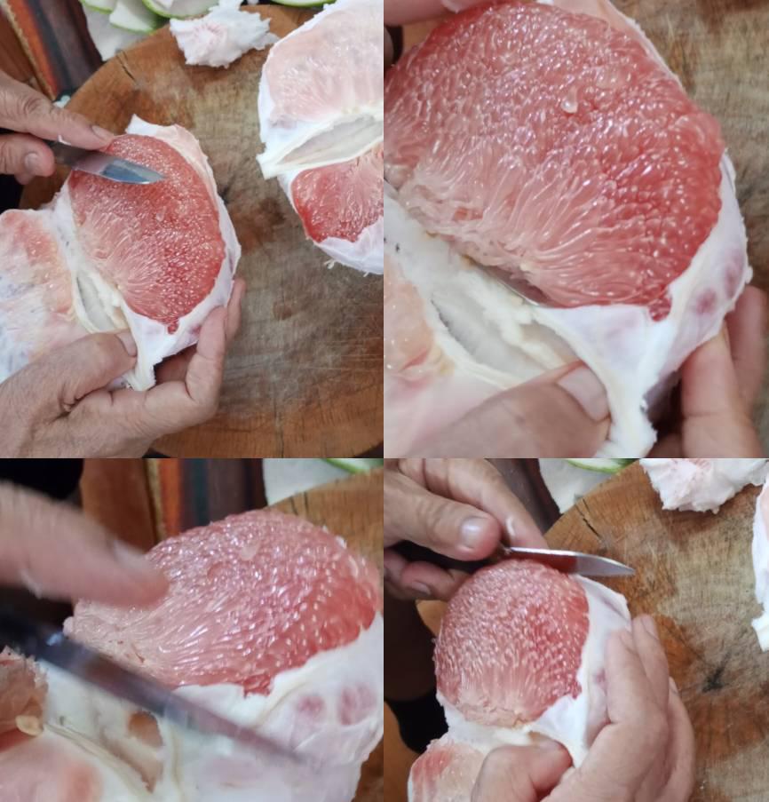และระหว่างปอก เนื้อส้มโอจะได้ไม่ขมค่ะ