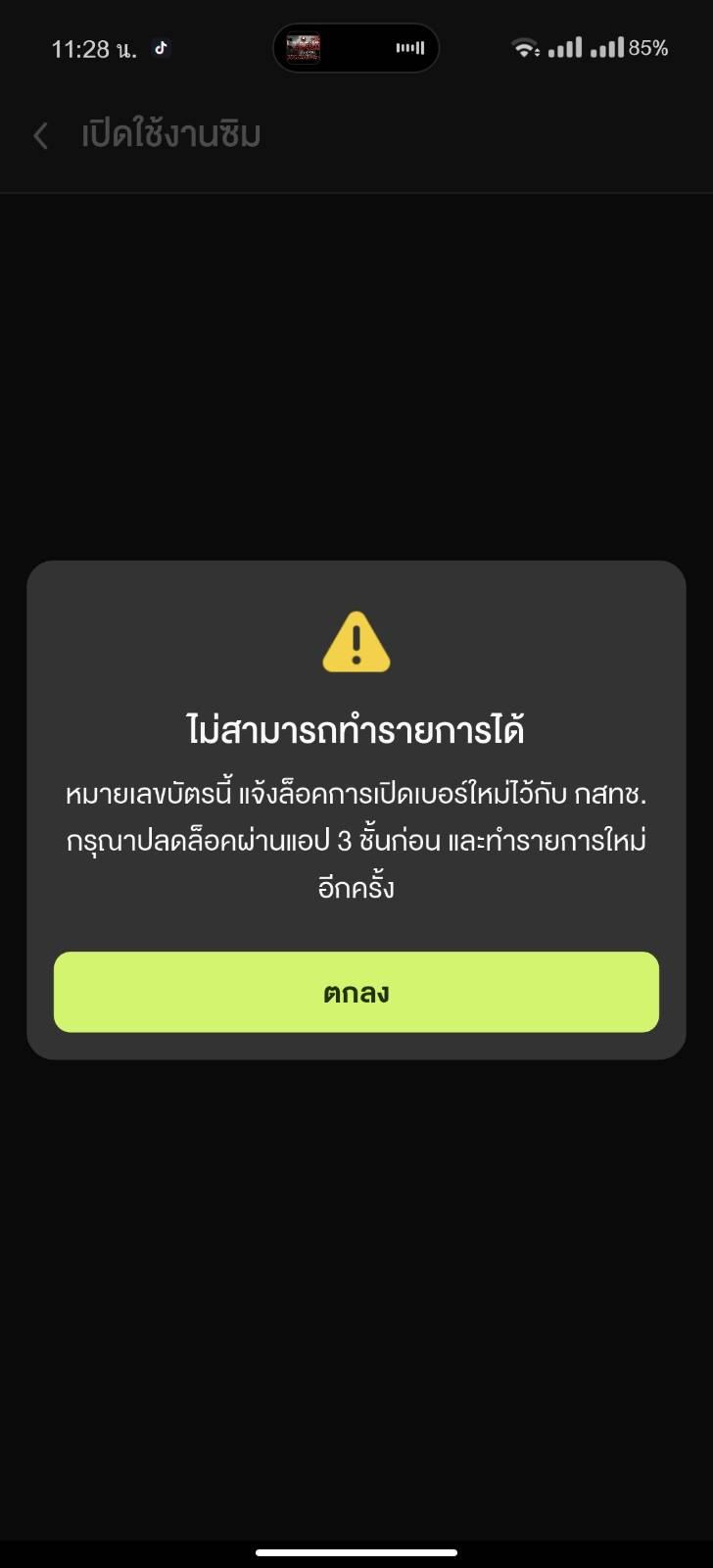 คือผมซื้อซิมมาใหม่ แล้วทำการเปิดเบอ มันขึ้นว่าเปิดใช้งานซิมไม่สำเร็จ หมายเลขบัตรนี้ไม่สามารถลงทะเบียนเพิ่มเติมได้ อันนี้มันเป็นอะไร ปกติเมื่อก่อนผมซื้อซิมมาทำการเปิดเบอด้วยตัวเองเส็จปุ๊บมันก็ใช้ได้เลย