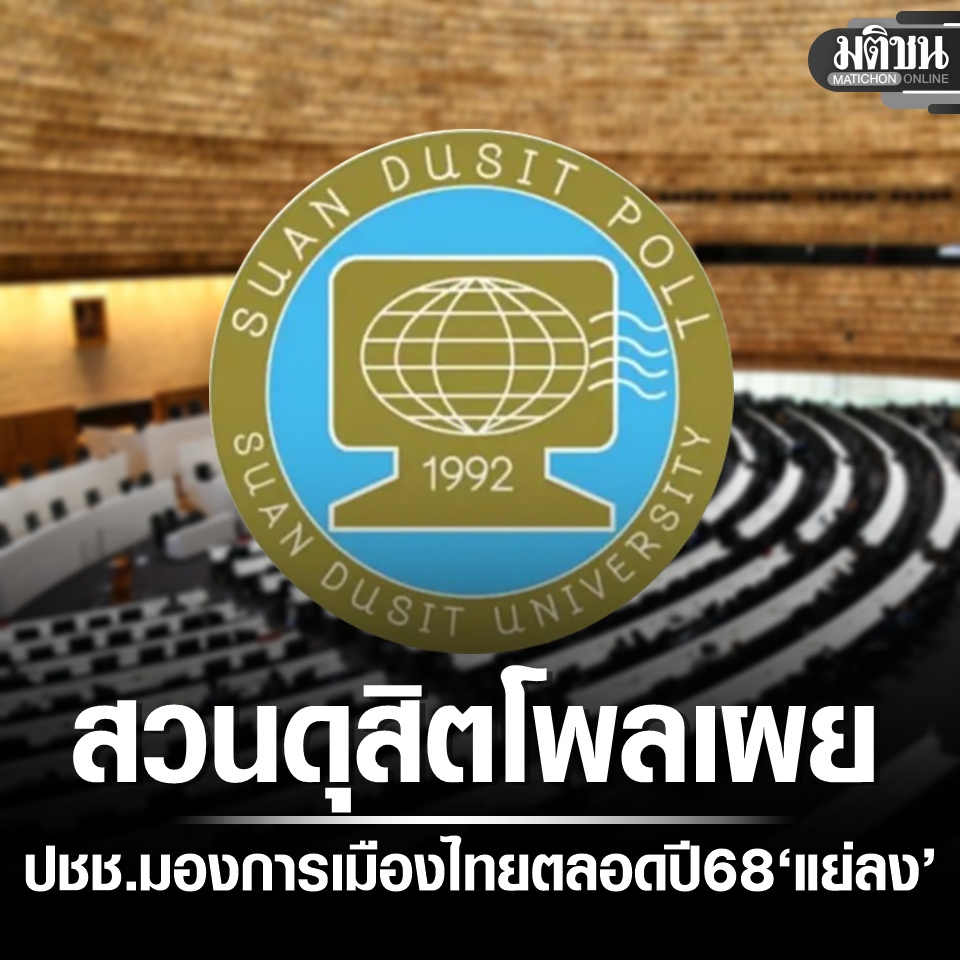 สวนดุสิตโพลเผย ปชช.กว่าครึ่งมองการเมืองไทยตลอดปี 68 แย่ลง