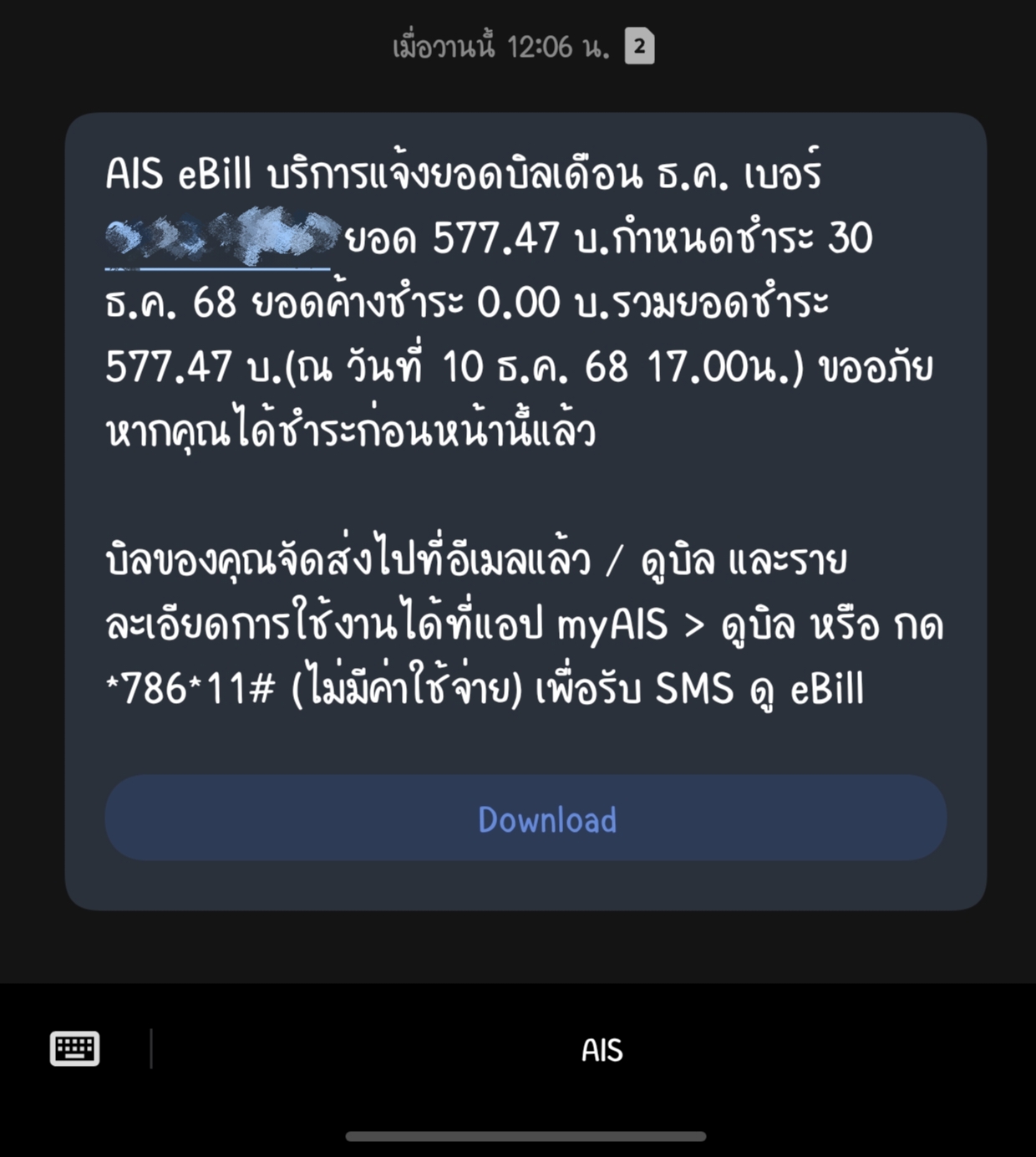สอบถาม Ais เกี่ยวกับยอดชำระเงินรายเดือนครับ