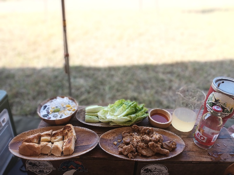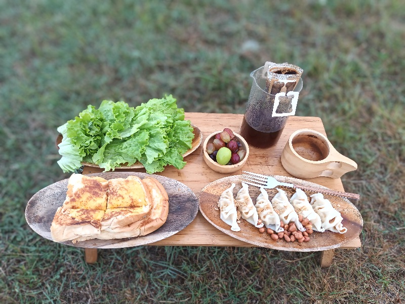 ใช้เวลา 45 นาทีได้ ยกออกมานั่งทำทรงหน้าเต็นท์ บรรยากาศสบายๆ ครับ อาหารง่ายๆ แค่นี้ ก็มีความสุขมากๆ แล้วครับ