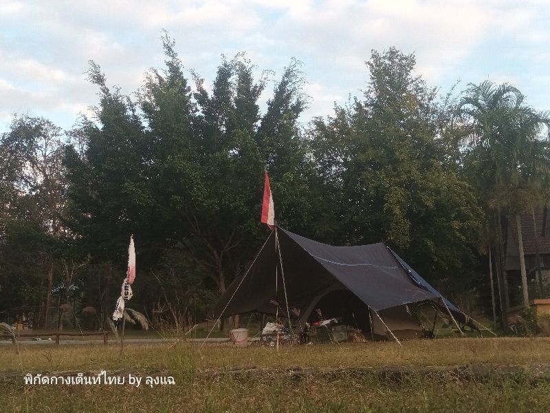 กางทาร์ปก่อนอื่น ดินแข็ง แต่สมอบกลุงแฉเอาอยู่ครับ ใช้เวลาราวครึ่งชม. ต่อด้วยกางเต็นท์จัดบ้านอีกราวครึ่งชม. ไม่ต้องขนของเหนื่อย เพราะจอดรถติดเต็นท์ได้เลย