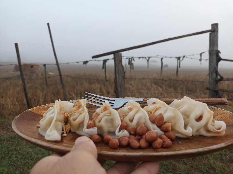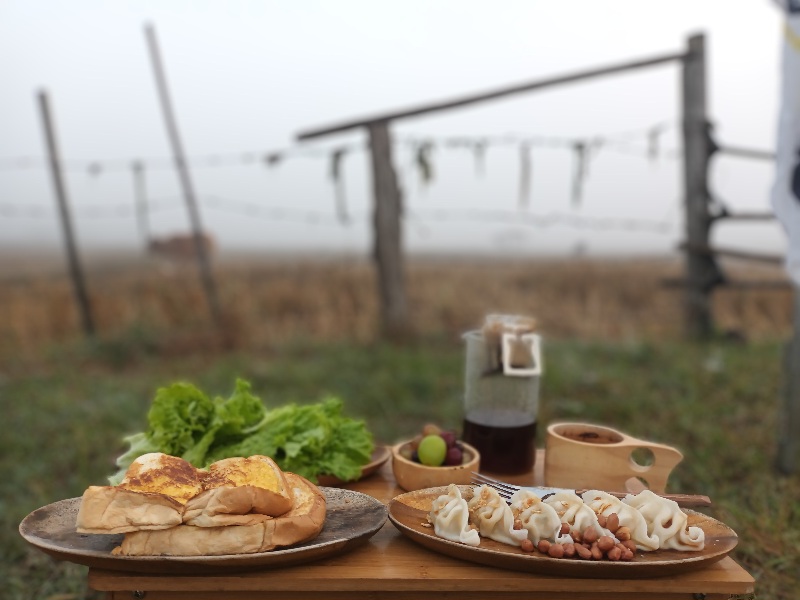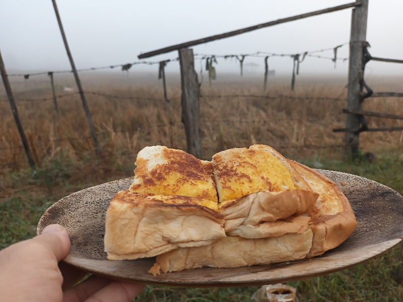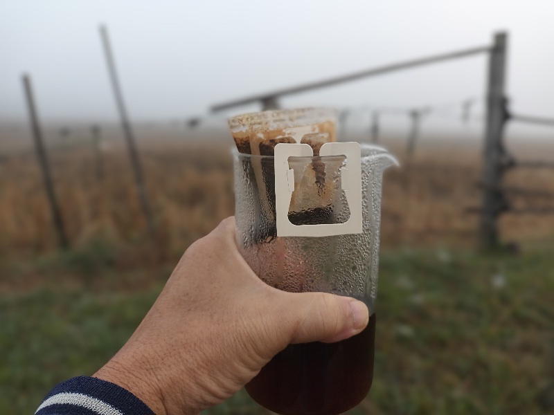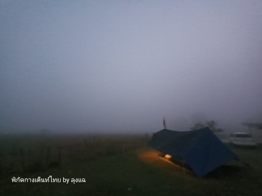 ตั้งปลุกตี 5 นิดๆ แต่สุดท้ายเลื่อนไปปลุก 6 โมงแทน เพราะนอนดึก เก็บถุงนอน หมอนแล้วออกมานั่งทำมื้อเช้า หมอกฟรุ้งกระจายไปทั่ว ที่เคยเห็นดอยม่อนจงก็ปิดหมด อากาศเย็นสบายครับ