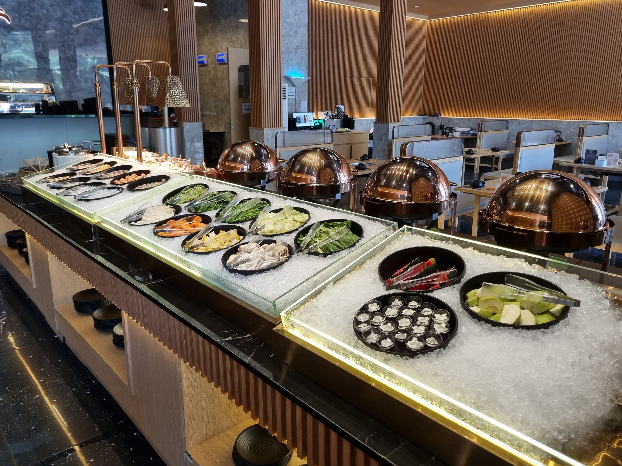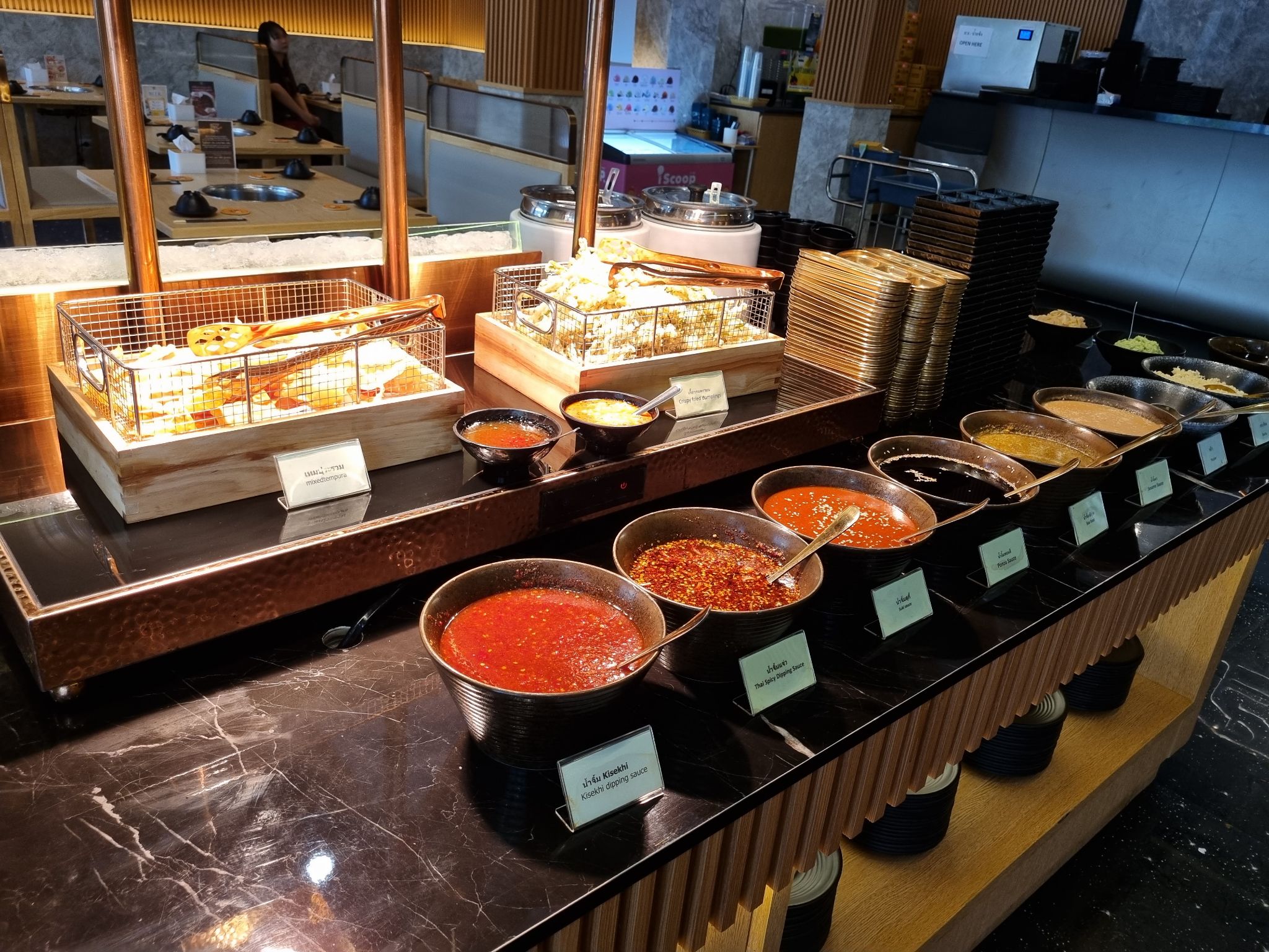 ในขณะที่กำลังรอหม้อมาลง พอดีเหลือบไปเห็นบาร์อาหารวางอยู่ตรงกลางร้าน จึงอดไม่ได้ที่จะไปเดินสำรวจ