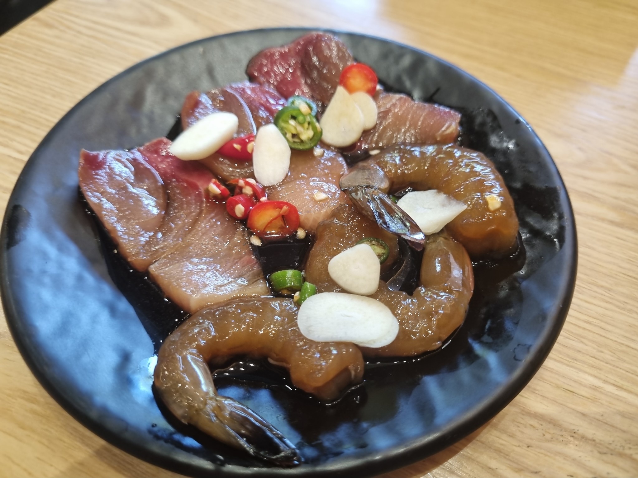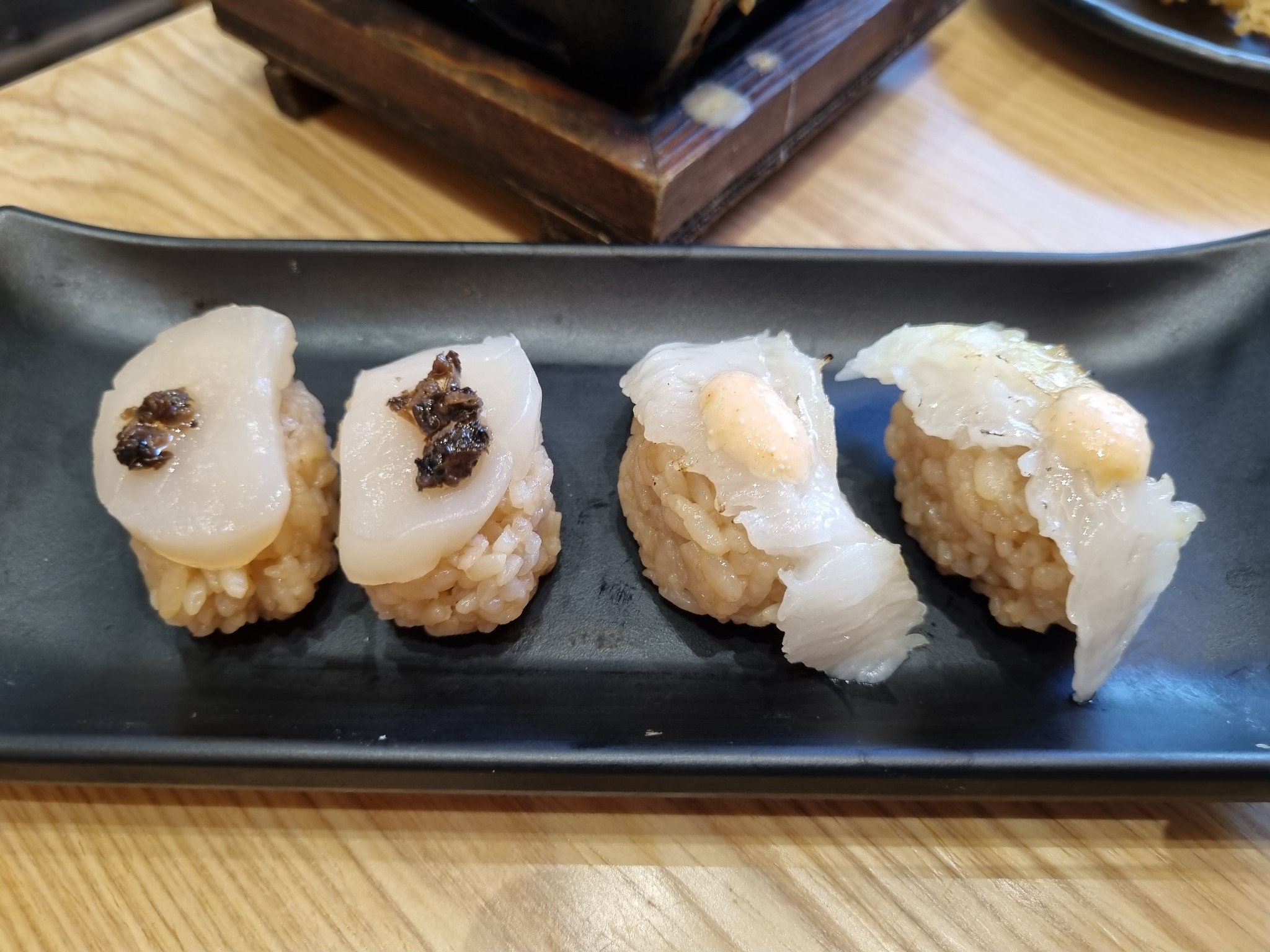 ฮามาจิรอบนี้สีสันสวยชึ้น แต่เปรี้ยวขึ้นมาหน่อย ส่วนกุ้งดองที่สั่งมาลองเพิ่ม มีความกรอบข้น ซอสดองเข้มข้นดี ไม่หวานหรือเค็มโดดจนเกินไป