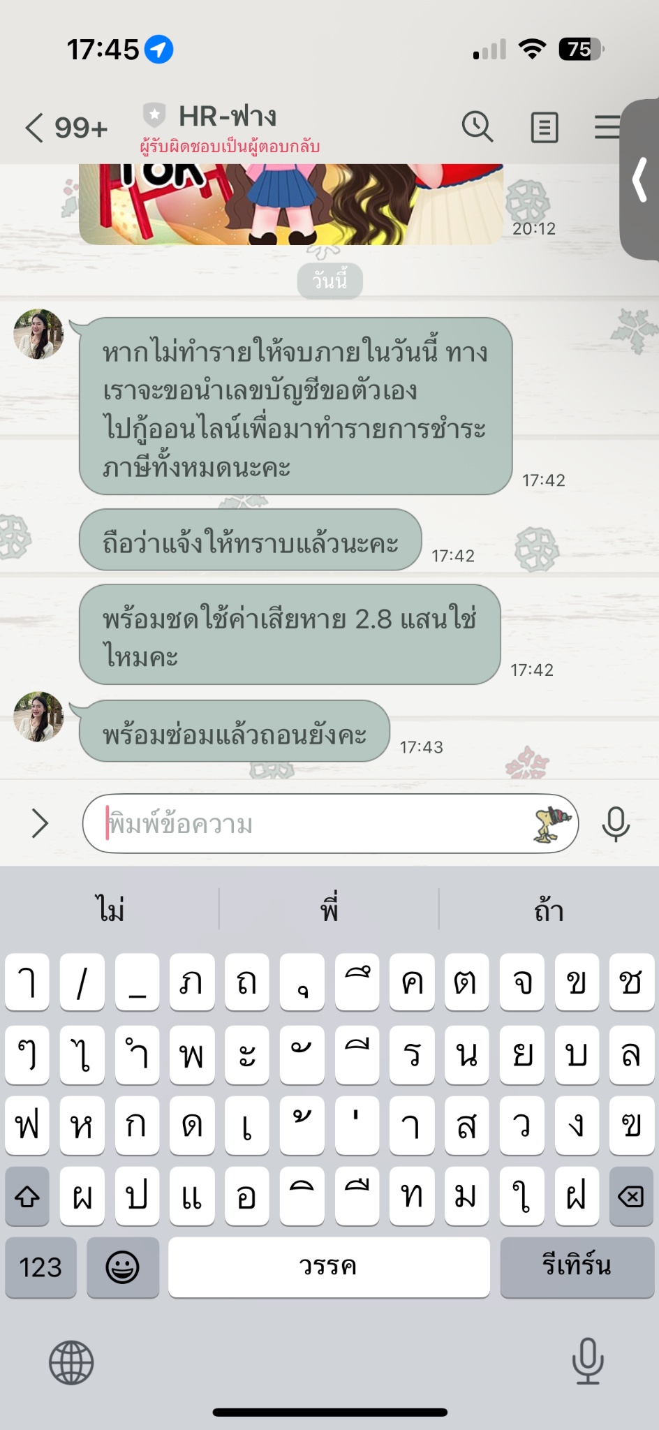 คือมียุ่ช่วงนึงหนูอยากทำงานแต่อายุยังไม่ถึงเลยทำงานออนไลน์แล้วเจอในเพจนึงให้ลิงค์มา เห็นน่าสนใจลองทำดูเหมือนให้กดสินค้าแล้วเหมือนได้ค่าคอมมันจะเป้นแอปให้ใส่รหัสข้อมูลส่วนตัวลงไปให้หมดหนูก็กรอกตามแล้ทีแรกเขาให้เติมไป200หนูก่เติมตามที่เขาบอกแล้วพอหนูทำเสร้จได้มา268บาทแล้วเขาบอกว่าน้องทำรอบสองด้วยแล้วเขาบอไม่ทำจพะฟ้องค่ะหนูก็เลยมำเลยจะเติม200เหมือนเดิมเขาบอกว่าหมดหนูเลยเติไ500แล้วต้องกดส10ครั้งหนูกดเหลือ2ครั้งแล้วเหมือนเขจะหักเอาที่เราเติมแล้วมันขึ้นไว่าได้เป็นหมื่นหนูก้เลยแคปให้คนนี้ดูว่าได้จิงหรอคะเขาบอกว่าไขอจิงแต่หนูต้องเติมที่ขาดเข้าไปเช่นหนูได้แล้ว1000แต่หนูต้องเติมให้ถึงหมื่นหนูก็เลยว่ามันไม่ใช่แล้ว หนูก็เลยบอกว่าหนูไม่ทำแล้วค่ะเขาก้อ่นไม่ตอบผ่านไปเดือนเขาบอกว่ายกเลิดกข้อมูลโอน500หนูโอนไปค่ะเพราะหนูกลัวแล้วเขาบอกยกเลิกงานครั้งที่1 โอนมา1111 หนูก็โอแล้วเขาหนูก้อภาทว่าแบบนี้คือยกเลิกข้อมูลแล้วใช่มั้ยคะเขาบอกว่ายังต้องโอนมาเพิ่มอีก2222 แล้วหนูก็เลยอ่านไม่ตอบ พอมาวันนี้เขาส่งมาแบบนี้พี่ๆๆคิดว่าหนูควรโอนไปให้เขามั้ยคะ2222 หรือควรบล็อคเขาไป