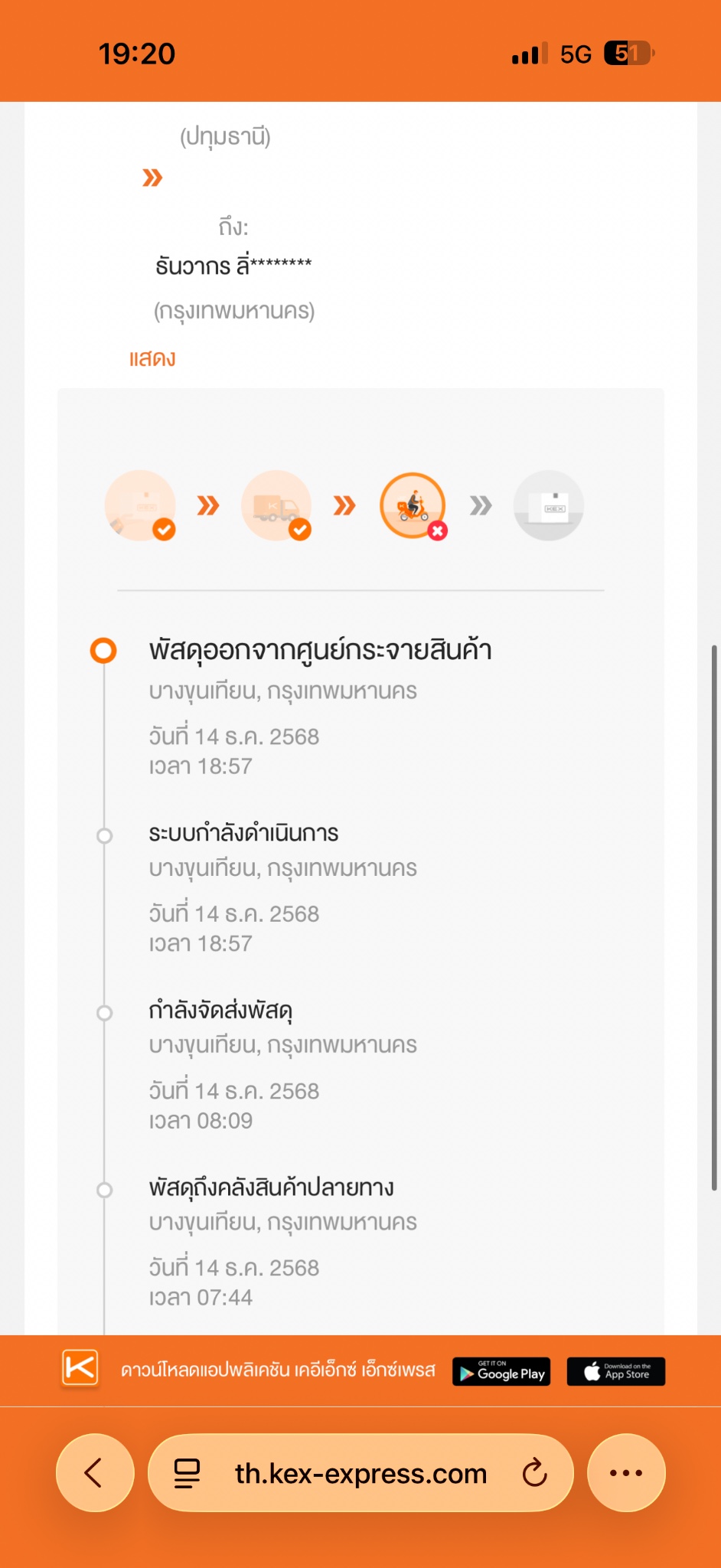 ส่งจากแค่รังสิตมาพระราม 2 บางขุนเทียน 4วันแล้วยังไม่ได้จะรั่ว